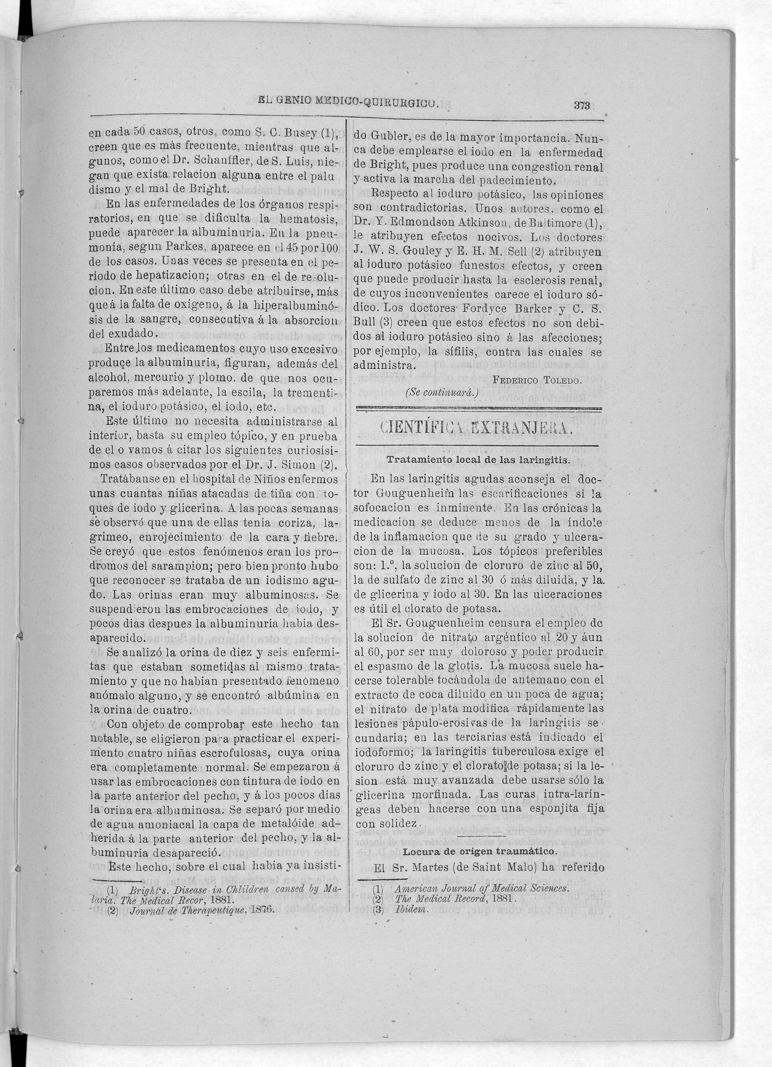 Parte de El Genio médico-quirúrgico : periódico de ciencias médicas ‐ [1882, Vol. 28, n. 1366-1393, 1340-1359.]