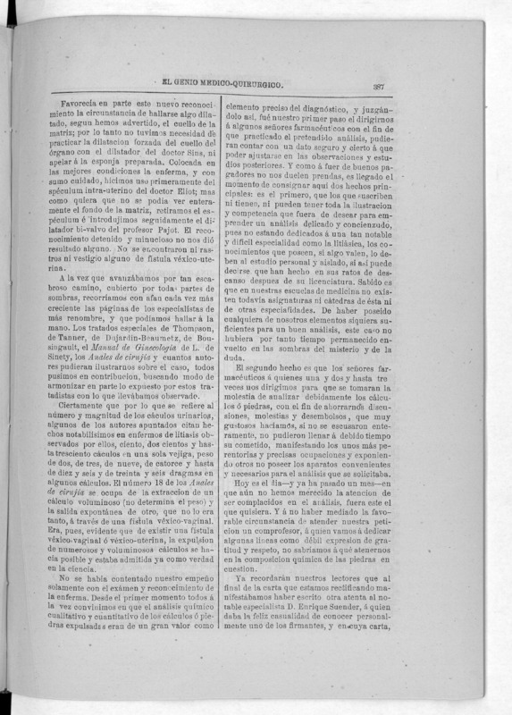 Parte de El Genio médico-quirúrgico : periódico de ciencias médicas ‐ [1882, Vol. 28, n. 1366-1393, 1340-1359.]