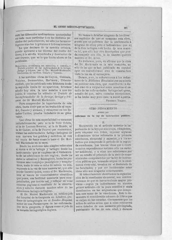 Parte de El Genio médico-quirúrgico : periódico de ciencias médicas ‐ [1882, Vol. 28, n. 1366-1393, 1340-1359.]