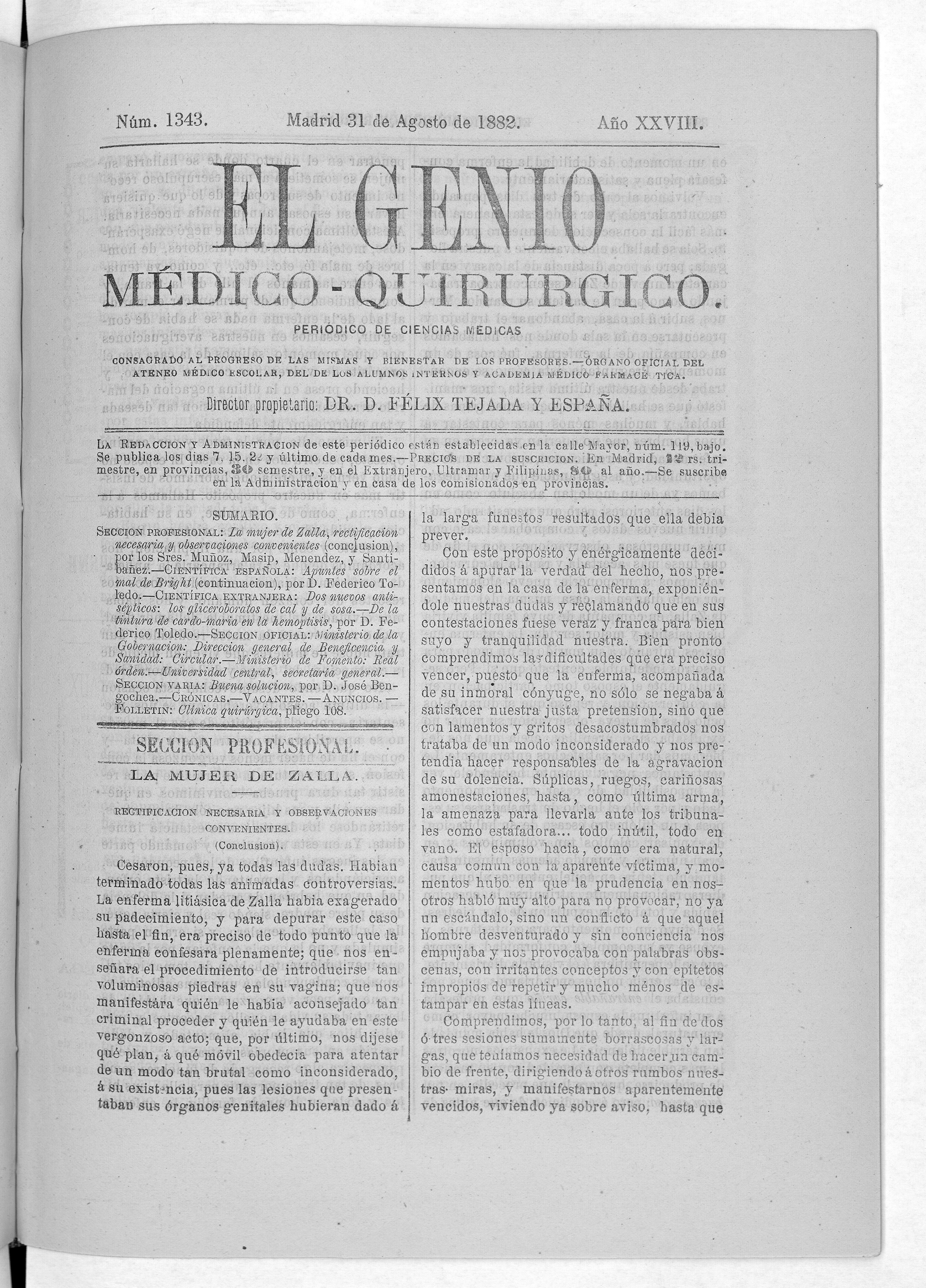 Parte de El Genio médico-quirúrgico : periódico de ciencias médicas ‐ [1882, Vol. 28, n. 1366-1393, 1340-1359.]