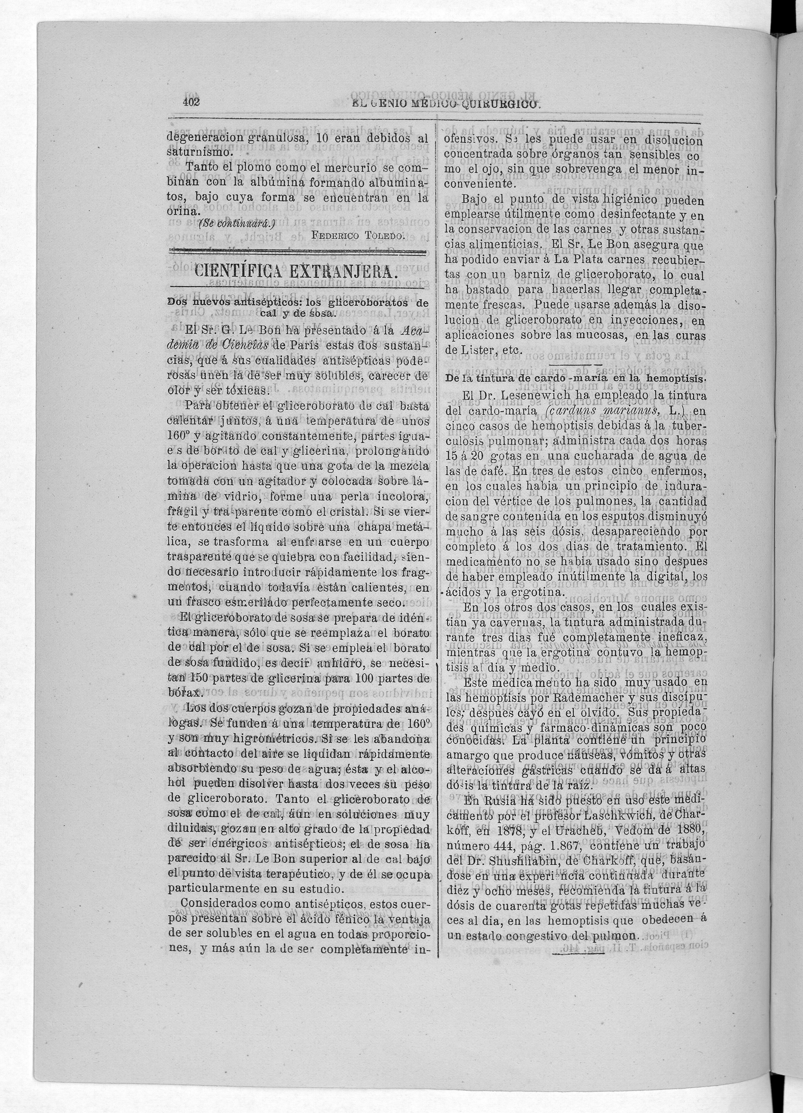 Parte de El Genio médico-quirúrgico : periódico de ciencias médicas ‐ [1882, Vol. 28, n. 1366-1393, 1340-1359.]