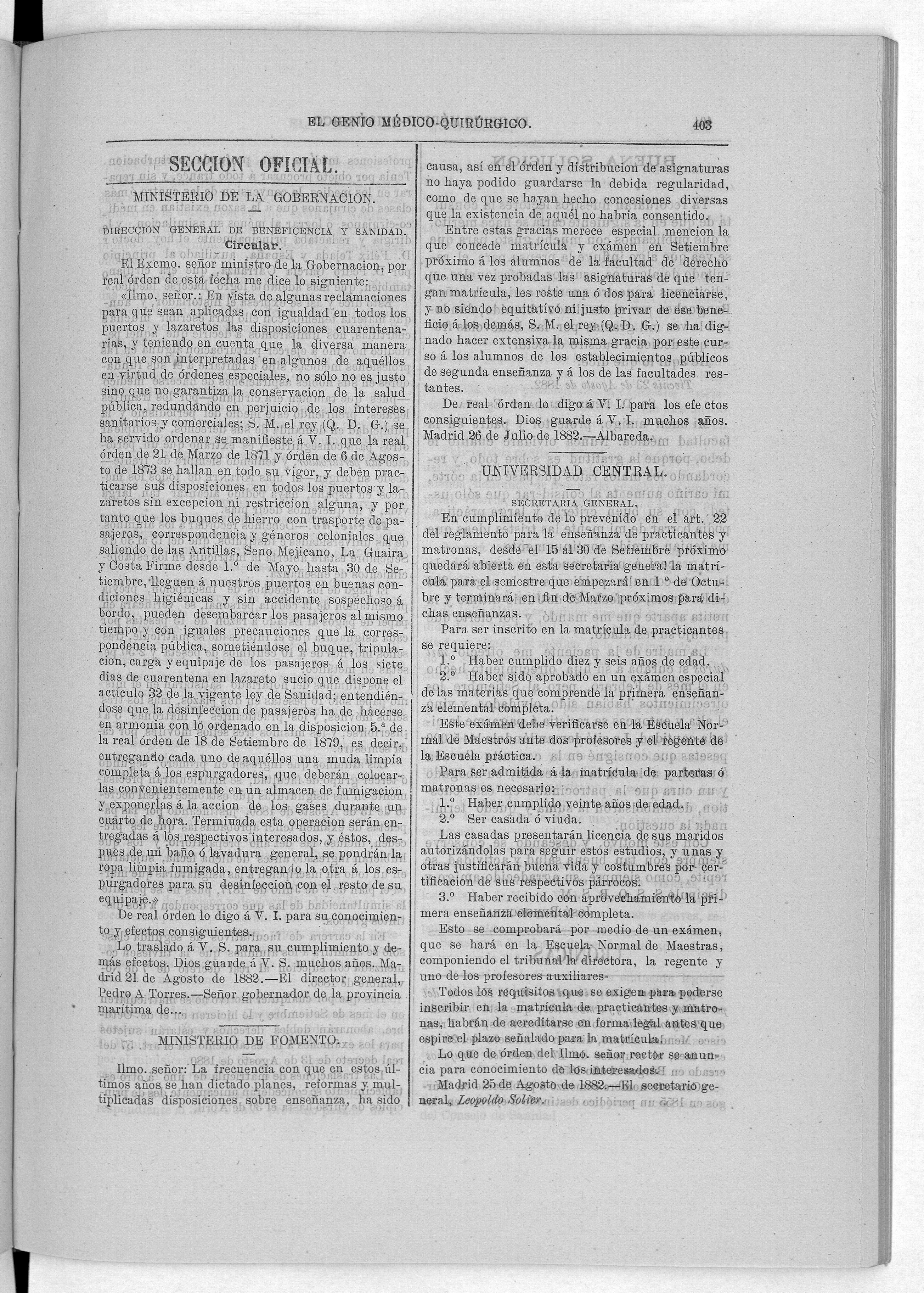 Parte de El Genio médico-quirúrgico : periódico de ciencias médicas ‐ [1882, Vol. 28, n. 1366-1393, 1340-1359.]