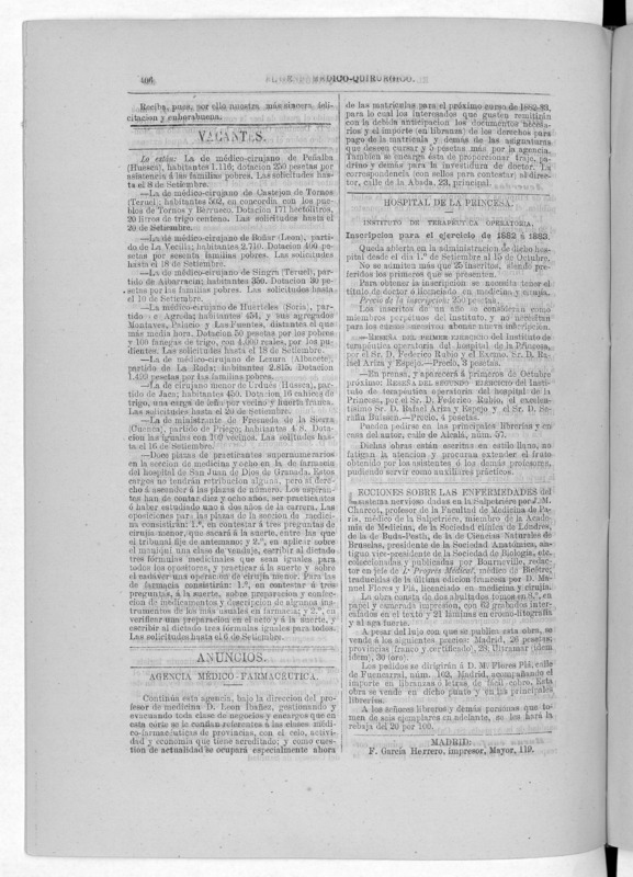 Parte de El Genio médico-quirúrgico : periódico de ciencias médicas ‐ [1882, Vol. 28, n. 1366-1393, 1340-1359.]