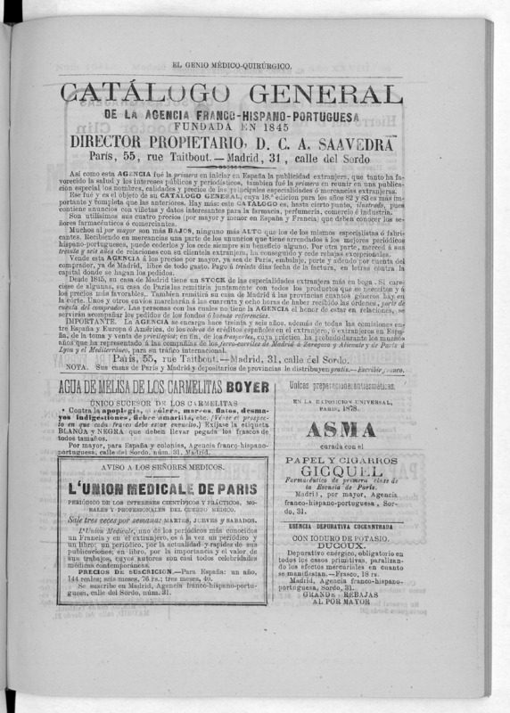 Parte de El Genio médico-quirúrgico : periódico de ciencias médicas ‐ [1882, Vol. 28, n. 1366-1393, 1340-1359.]