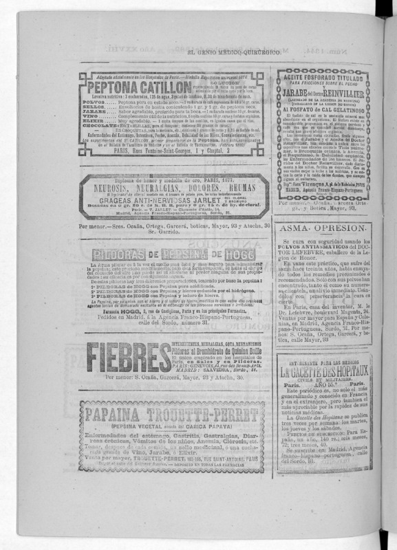 Parte de El Genio médico-quirúrgico : periódico de ciencias médicas ‐ [1882, Vol. 28, n. 1366-1393, 1340-1359.]