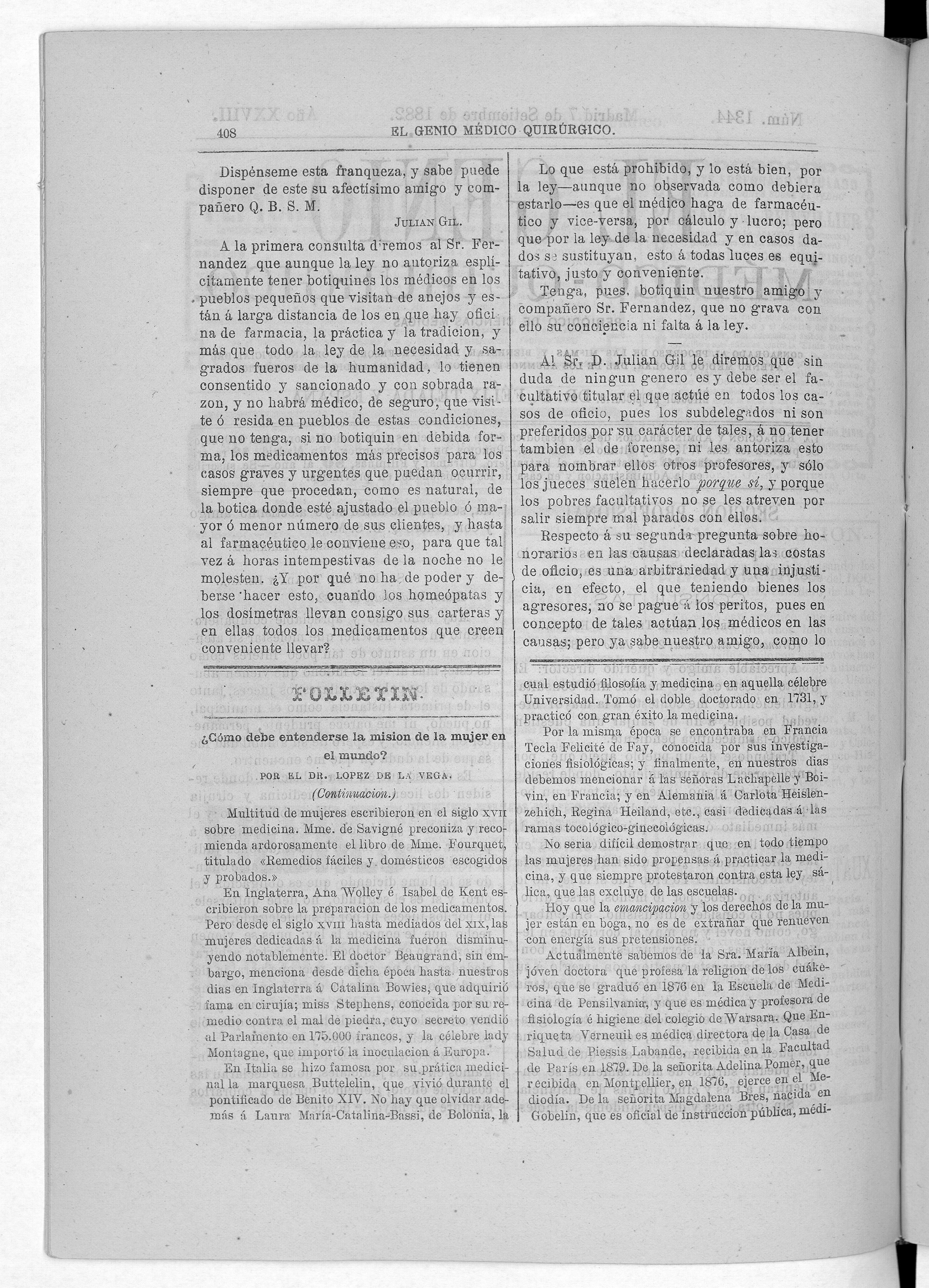 Parte de El Genio médico-quirúrgico : periódico de ciencias médicas ‐ [1882, Vol. 28, n. 1366-1393, 1340-1359.]