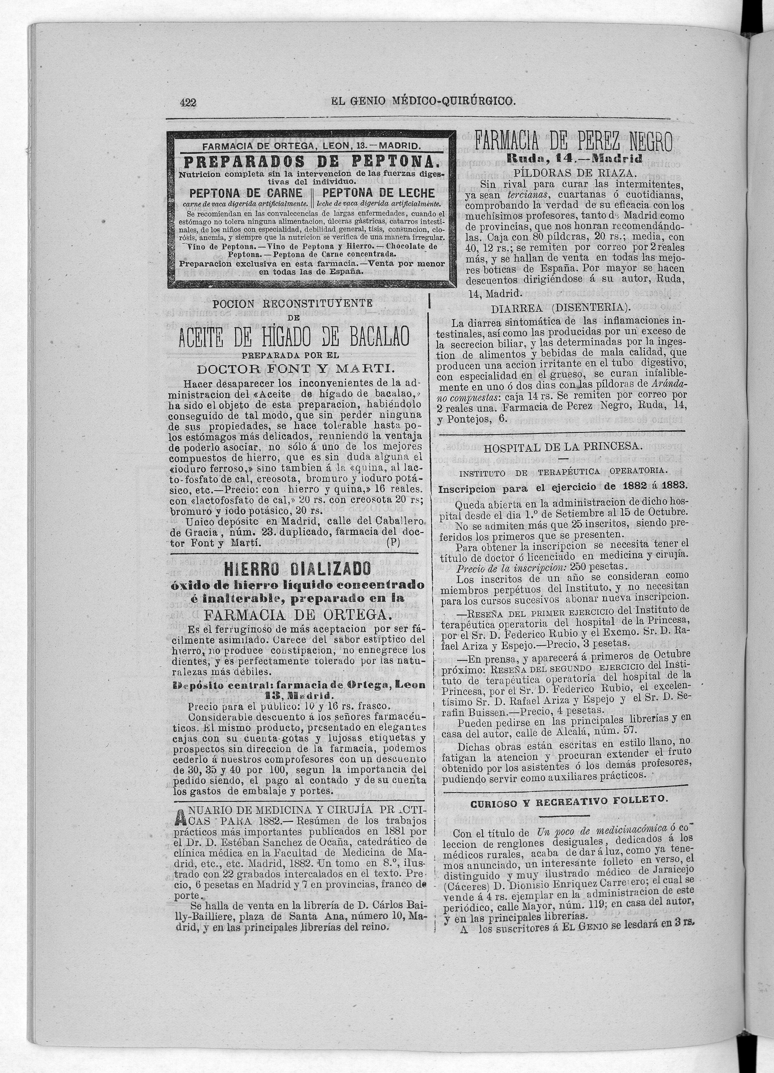 Parte de El Genio médico-quirúrgico : periódico de ciencias médicas ‐ [1882, Vol. 28, n. 1366-1393, 1340-1359.]