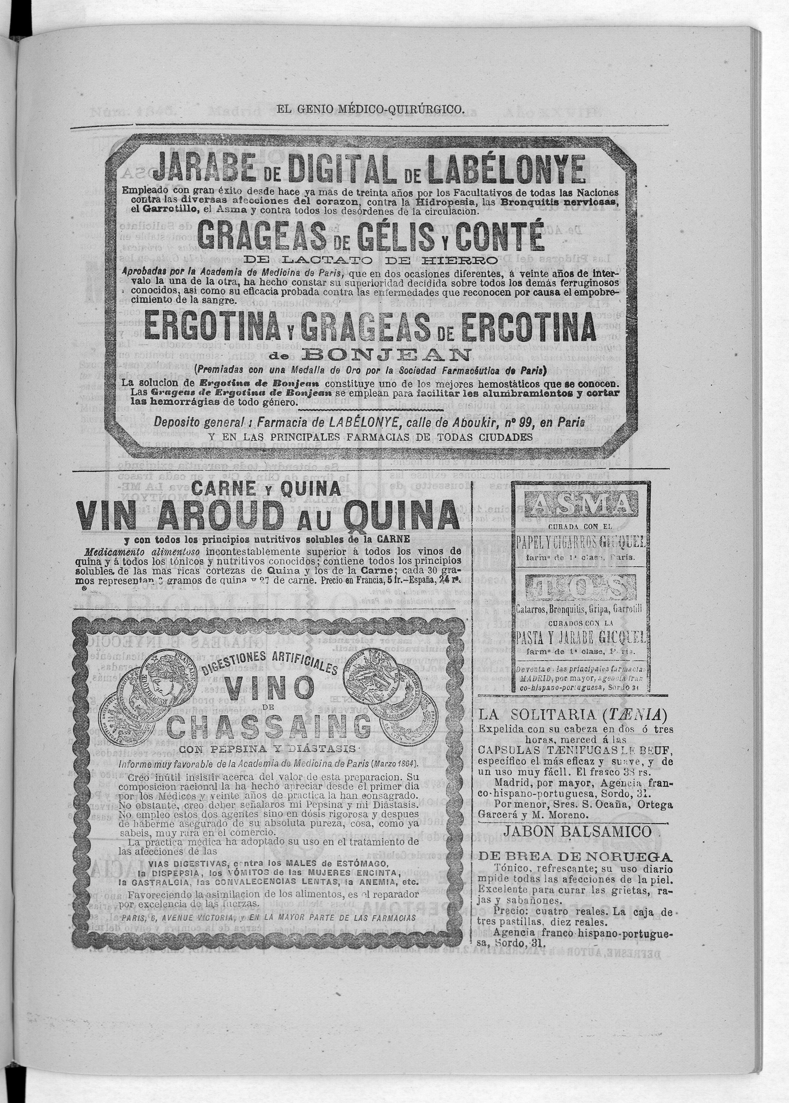 Parte de El Genio médico-quirúrgico : periódico de ciencias médicas ‐ [1882, Vol. 28, n. 1366-1393, 1340-1359.]