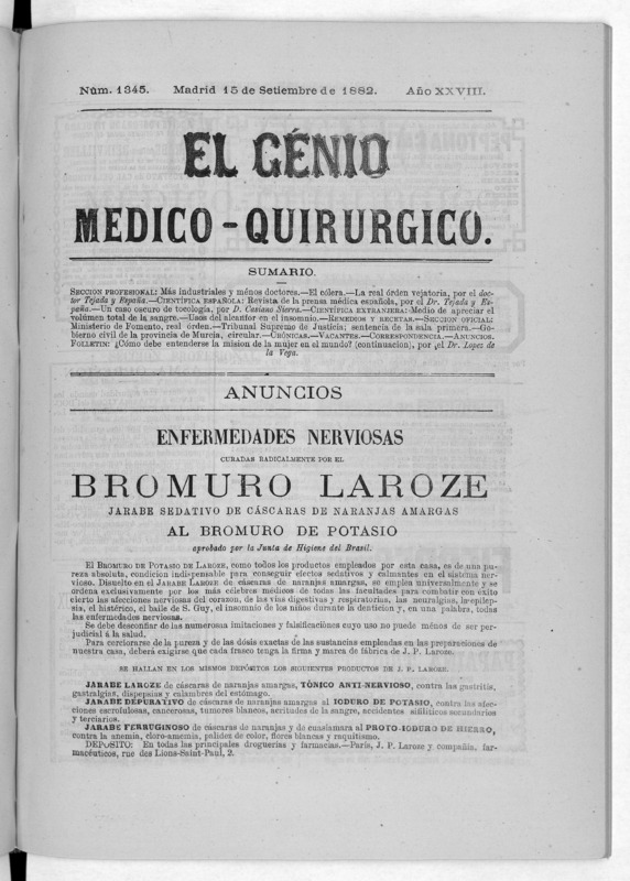 Parte de El Genio médico-quirúrgico : periódico de ciencias médicas ‐ [1882, Vol. 28, n. 1366-1393, 1340-1359.]