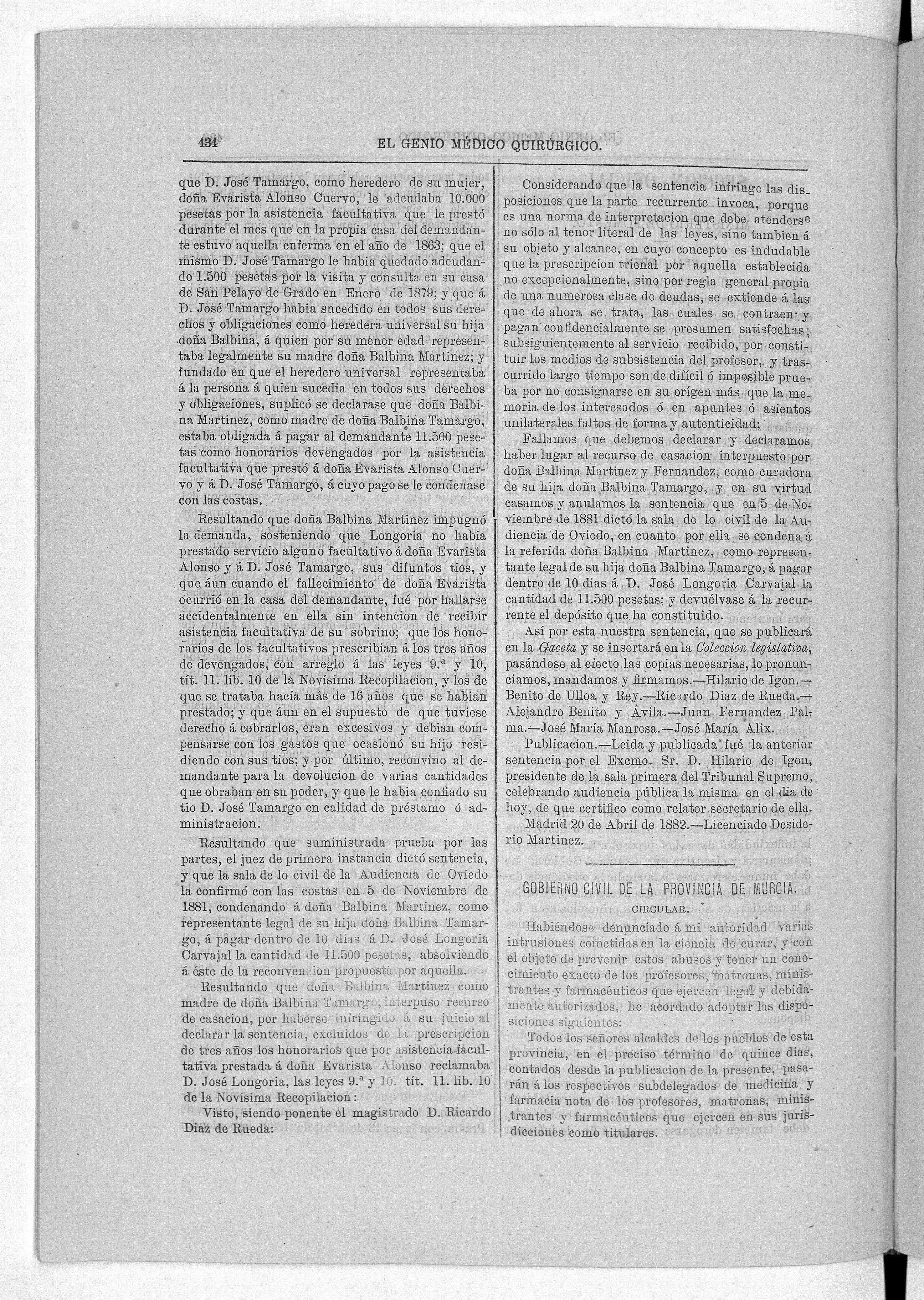 Parte de El Genio médico-quirúrgico : periódico de ciencias médicas ‐ [1882, Vol. 28, n. 1366-1393, 1340-1359.]