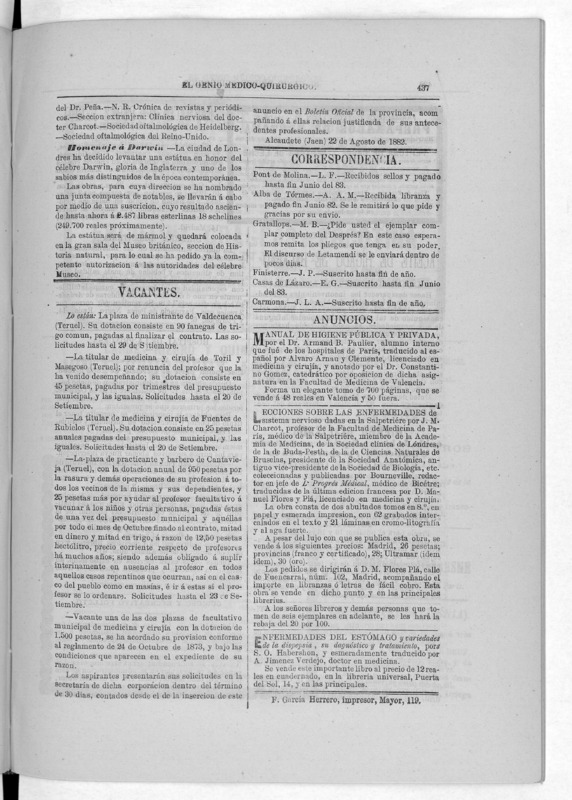 Parte de El Genio médico-quirúrgico : periódico de ciencias médicas ‐ [1882, Vol. 28, n. 1366-1393, 1340-1359.]