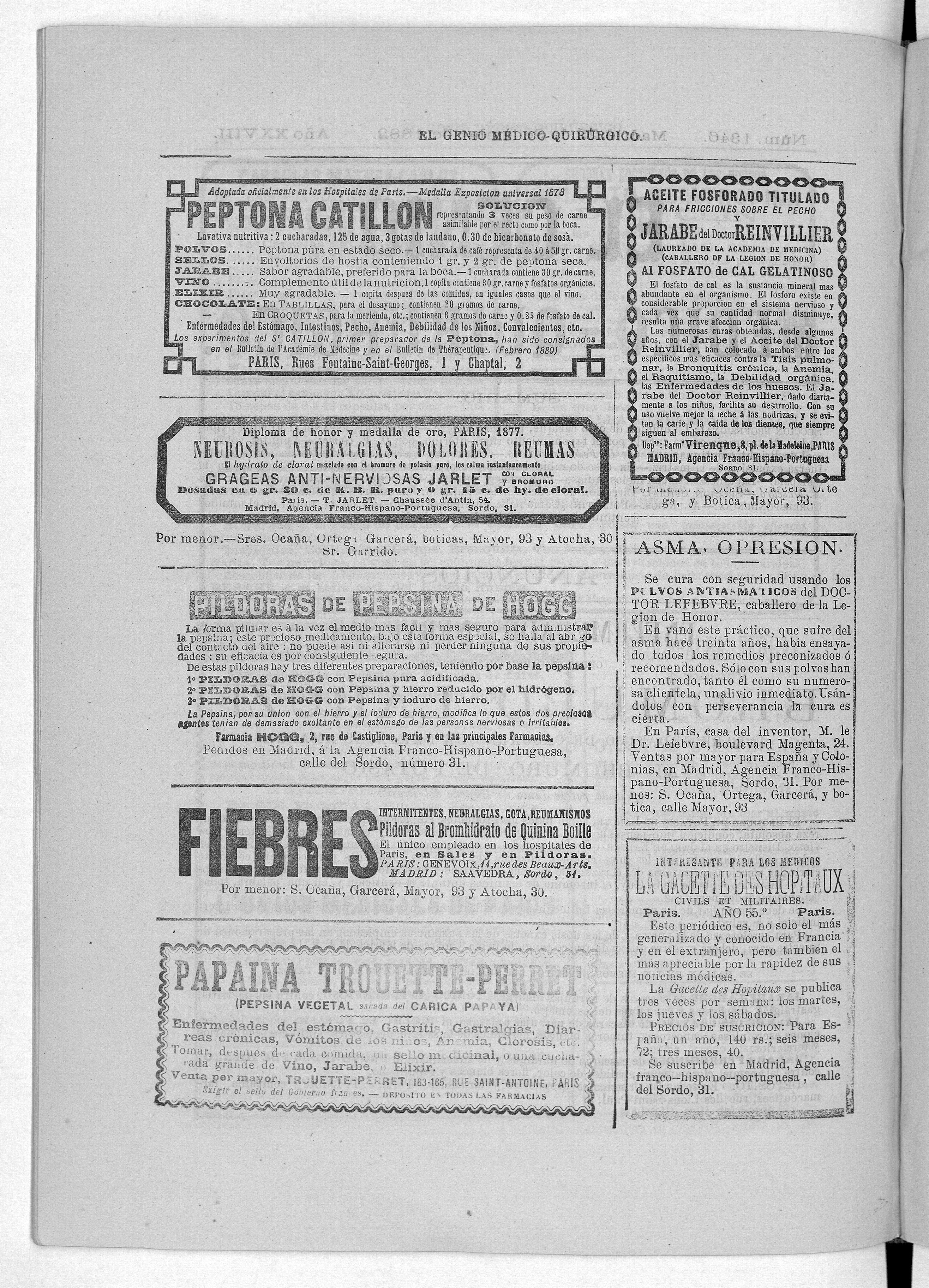 Parte de El Genio médico-quirúrgico : periódico de ciencias médicas ‐ [1882, Vol. 28, n. 1366-1393, 1340-1359.]