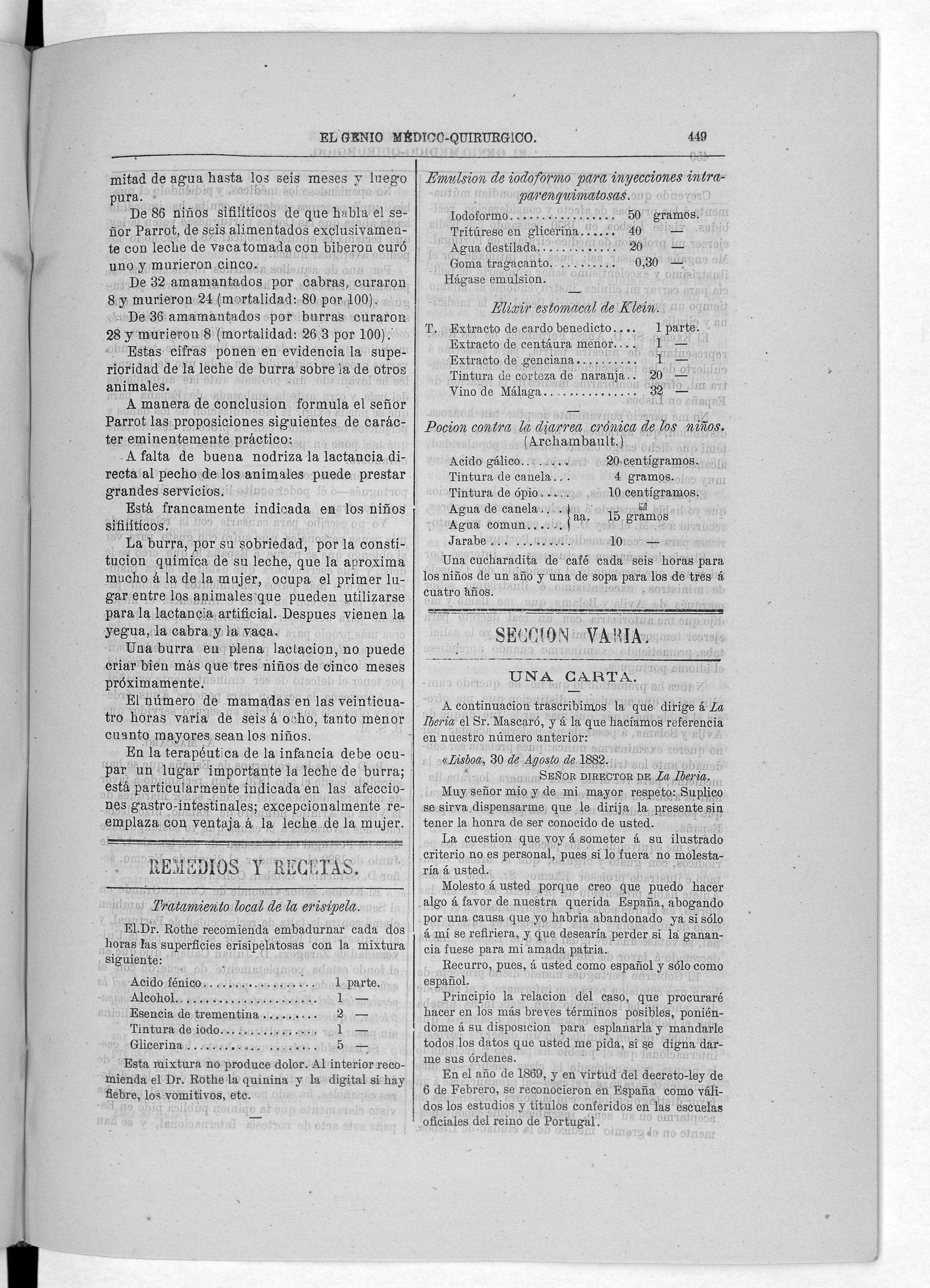 Parte de El Genio médico-quirúrgico : periódico de ciencias médicas ‐ [1882, Vol. 28, n. 1366-1393, 1340-1359.]