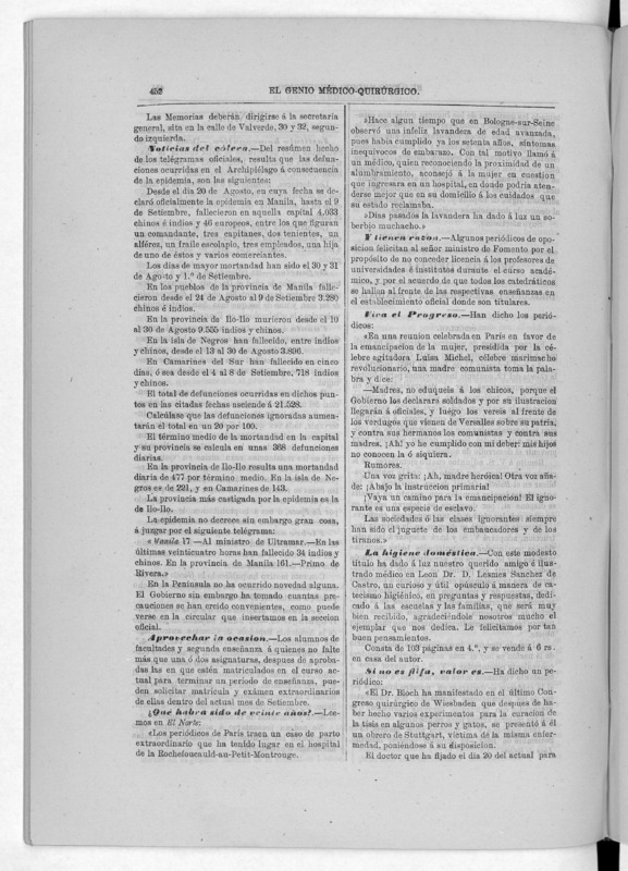 Parte de El Genio médico-quirúrgico : periódico de ciencias médicas ‐ [1882, Vol. 28, n. 1366-1393, 1340-1359.]