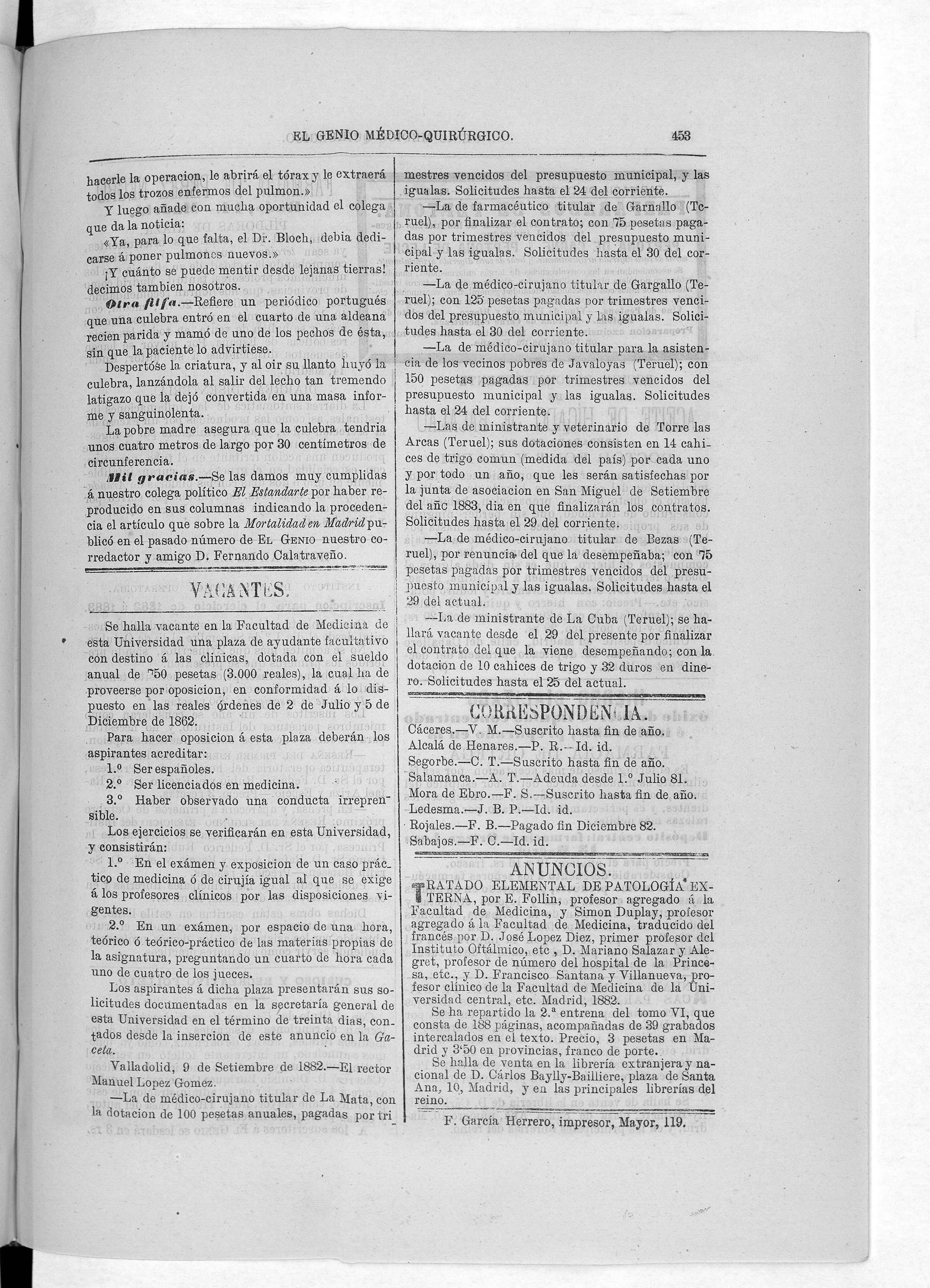 Parte de El Genio médico-quirúrgico : periódico de ciencias médicas ‐ [1882, Vol. 28, n. 1366-1393, 1340-1359.]