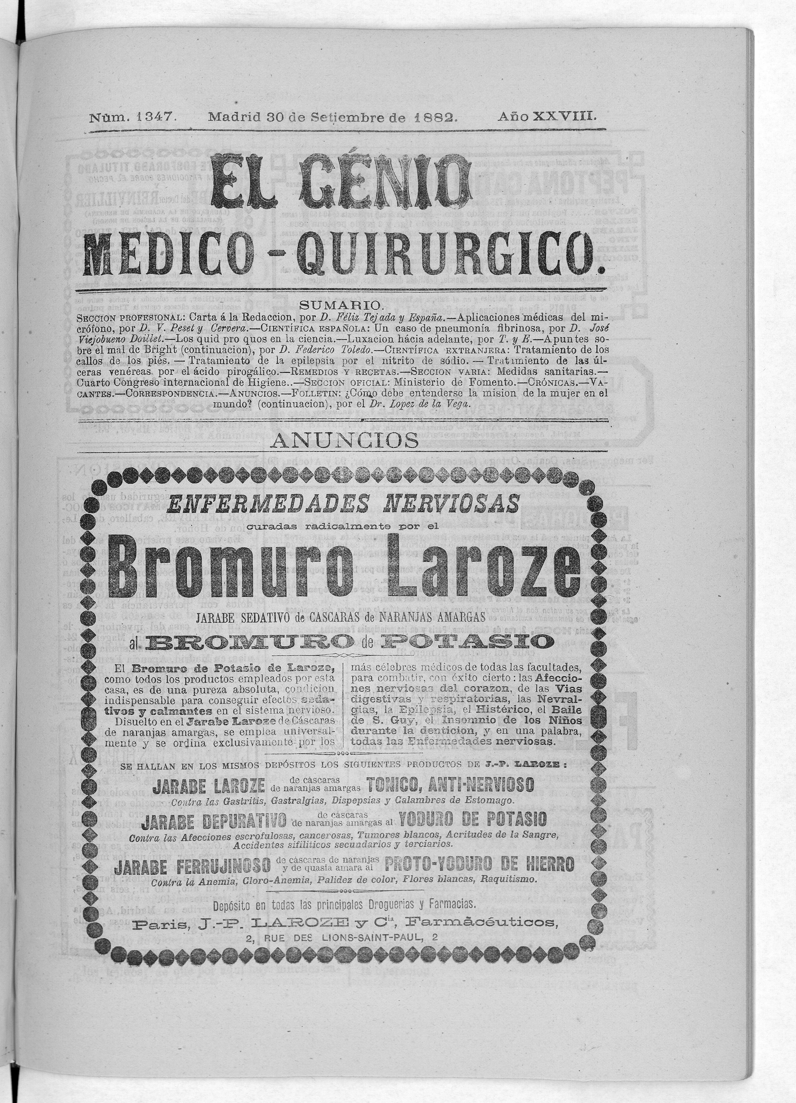 Parte de El Genio médico-quirúrgico : periódico de ciencias médicas ‐ [1882, Vol. 28, n. 1366-1393, 1340-1359.]