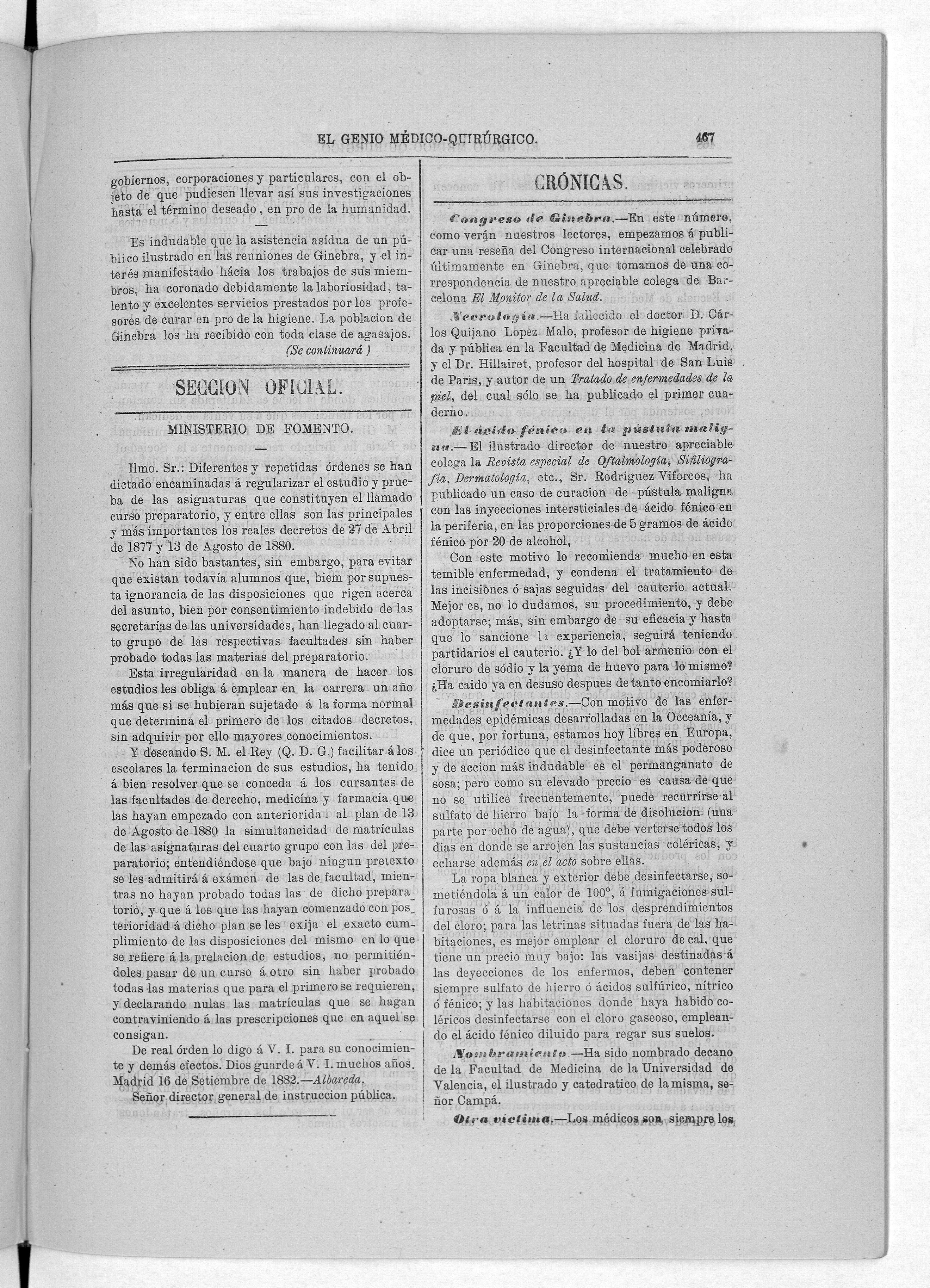 Parte de El Genio médico-quirúrgico : periódico de ciencias médicas ‐ [1882, Vol. 28, n. 1366-1393, 1340-1359.]