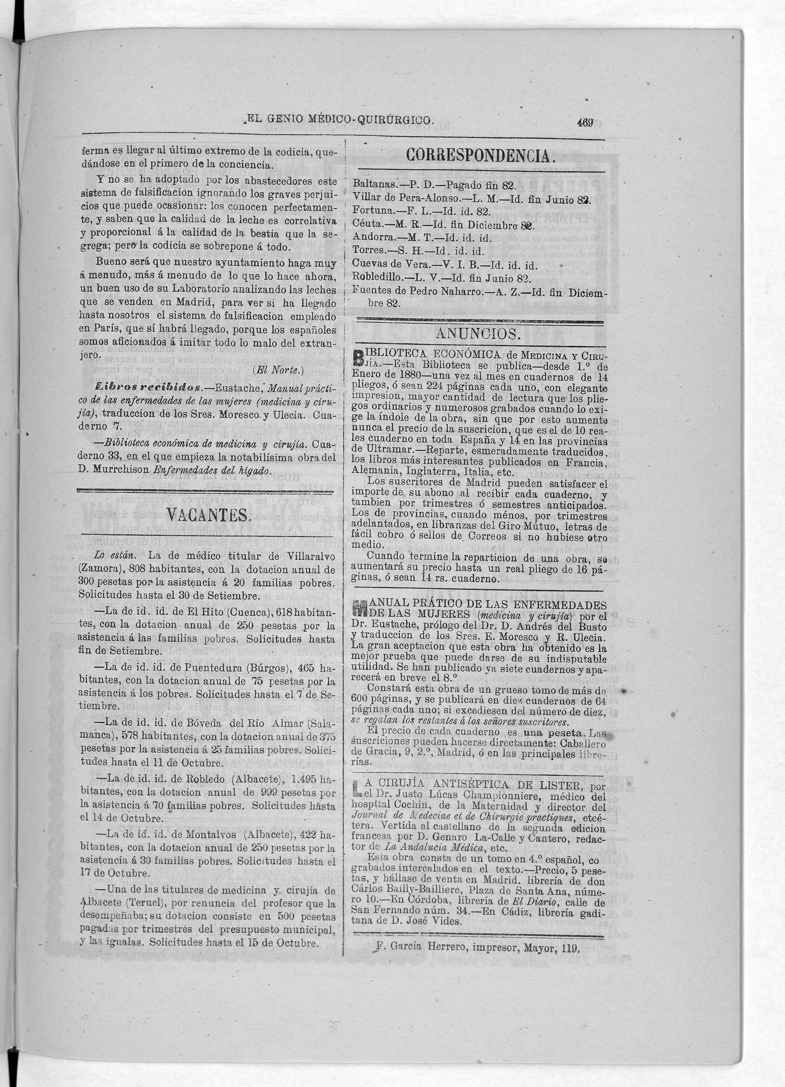 Parte de El Genio médico-quirúrgico : periódico de ciencias médicas ‐ [1882, Vol. 28, n. 1366-1393, 1340-1359.]