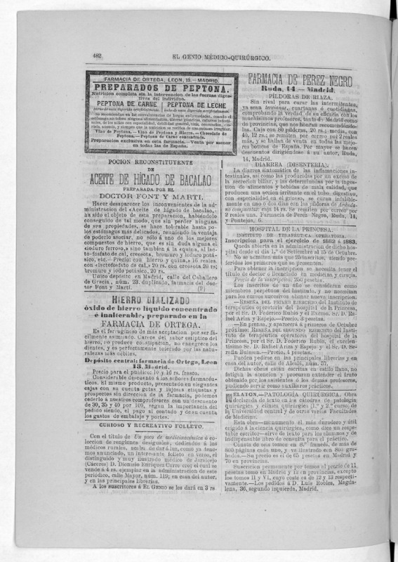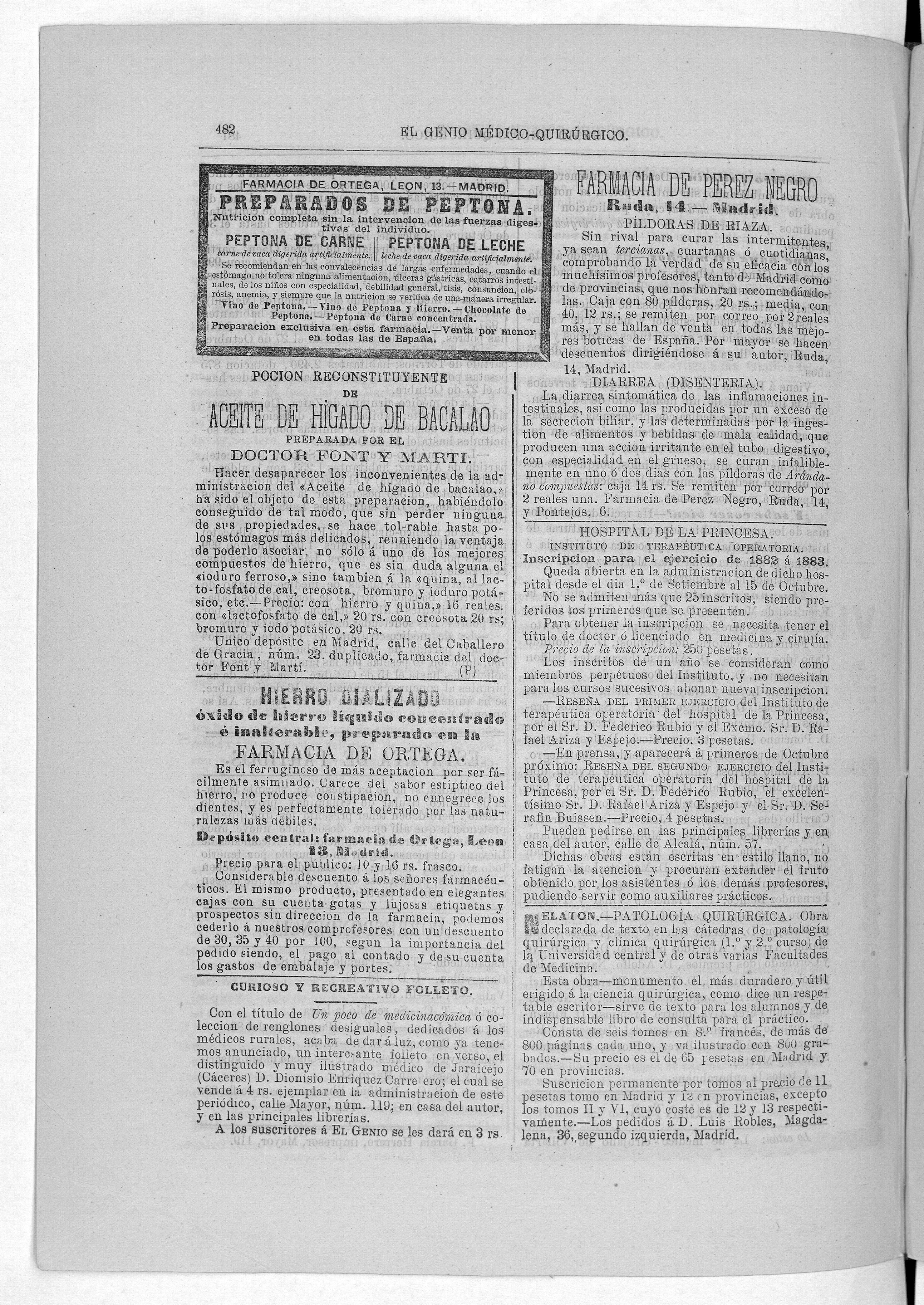 Parte de El Genio médico-quirúrgico : periódico de ciencias médicas ‐ [1882, Vol. 28, n. 1366-1393, 1340-1359.]