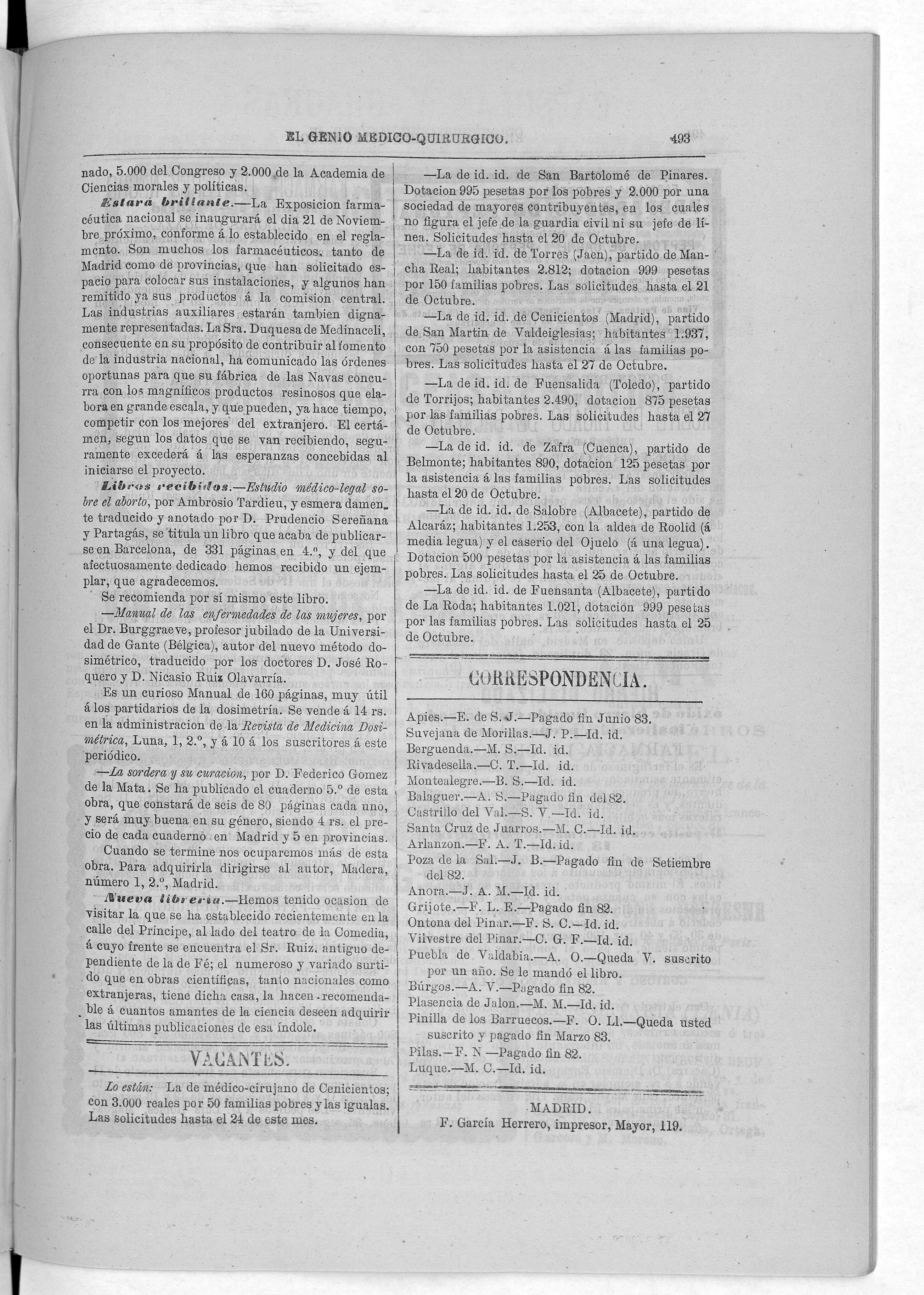 Parte de El Genio médico-quirúrgico : periódico de ciencias médicas ‐ [1882, Vol. 28, n. 1366-1393, 1340-1359.]