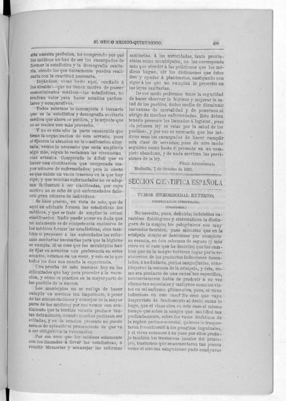 Parte de El Genio médico-quirúrgico : periódico de ciencias médicas ‐ [1882, Vol. 28, n. 1366-1393, 1340-1359.]