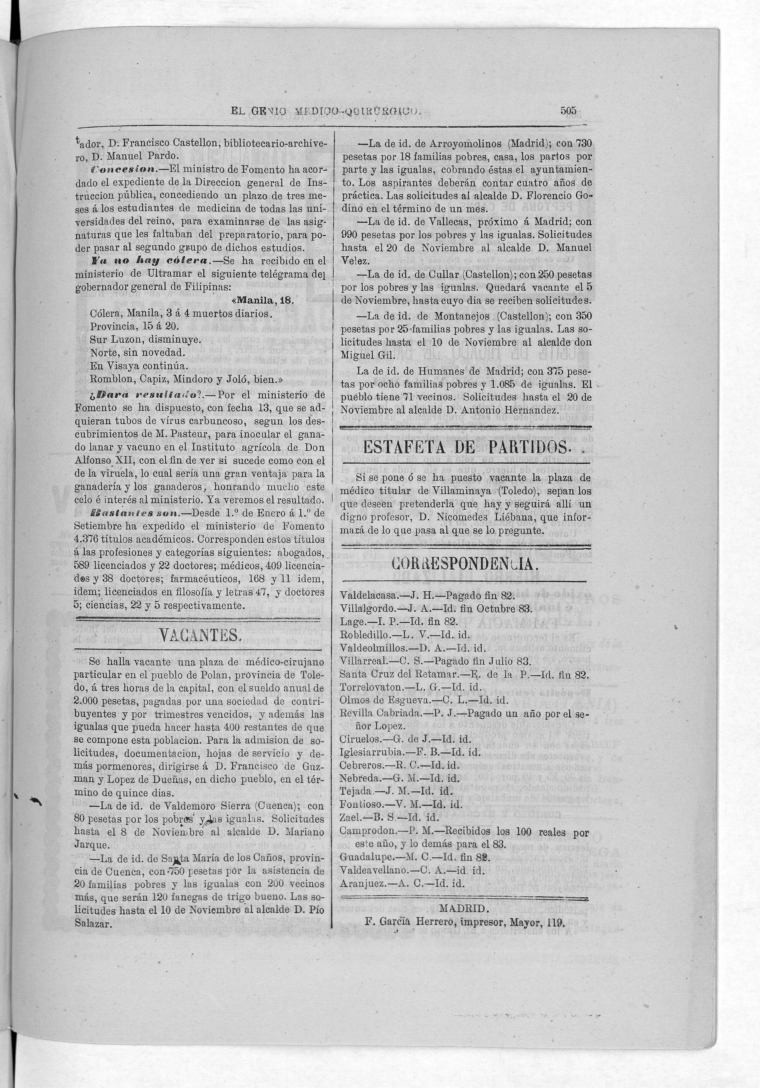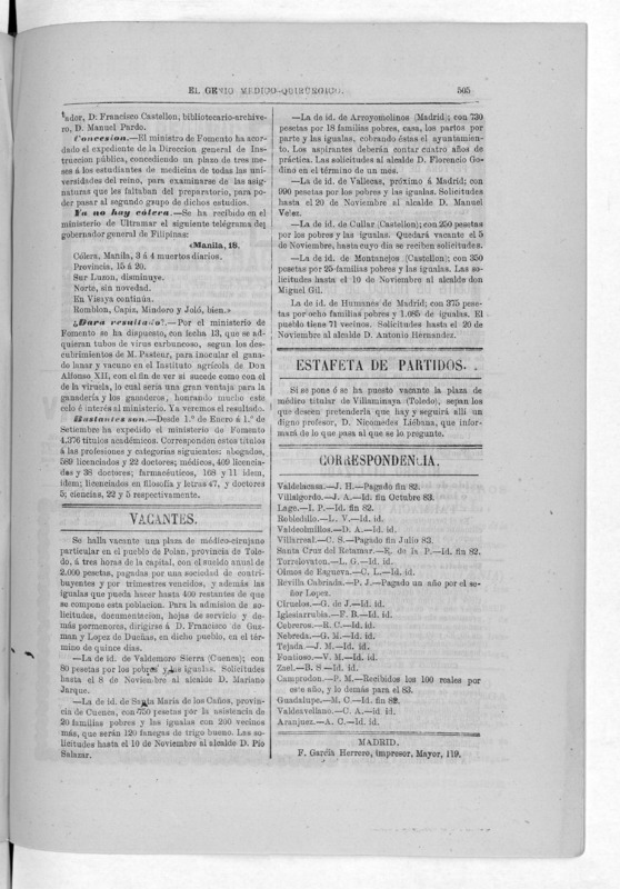 Parte de El Genio médico-quirúrgico : periódico de ciencias médicas ‐ [1882, Vol. 28, n. 1366-1393, 1340-1359.]