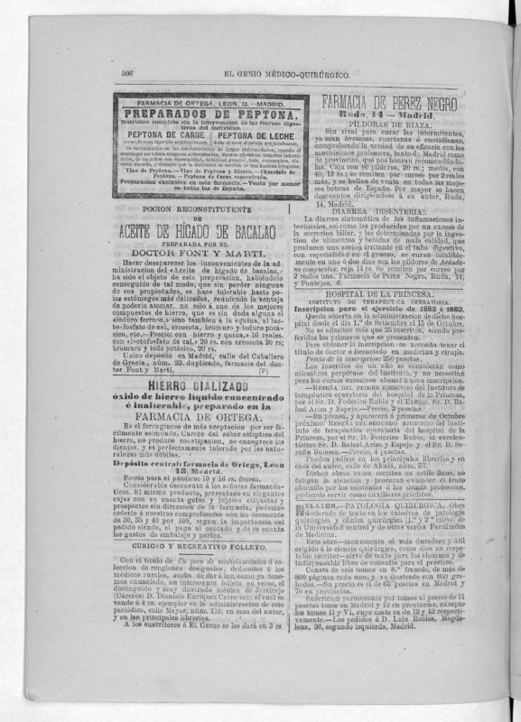 Parte de El Genio médico-quirúrgico : periódico de ciencias médicas ‐ [1882, Vol. 28, n. 1366-1393, 1340-1359.]
