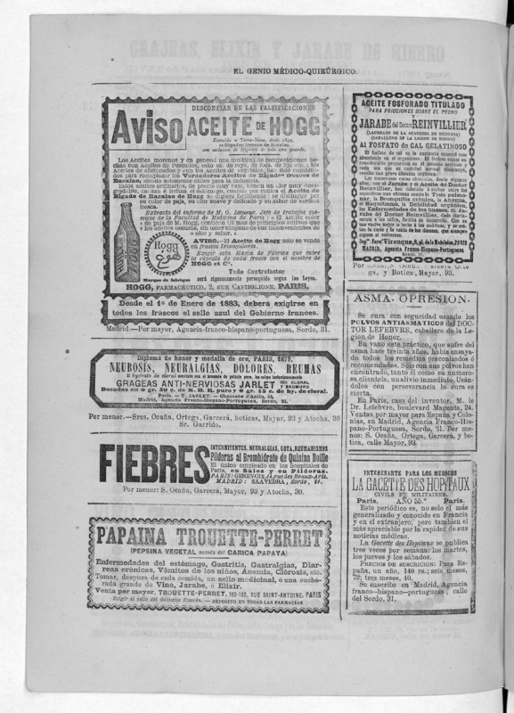 Parte de El Genio médico-quirúrgico : periódico de ciencias médicas ‐ [1882, Vol. 28, n. 1366-1393, 1340-1359.]