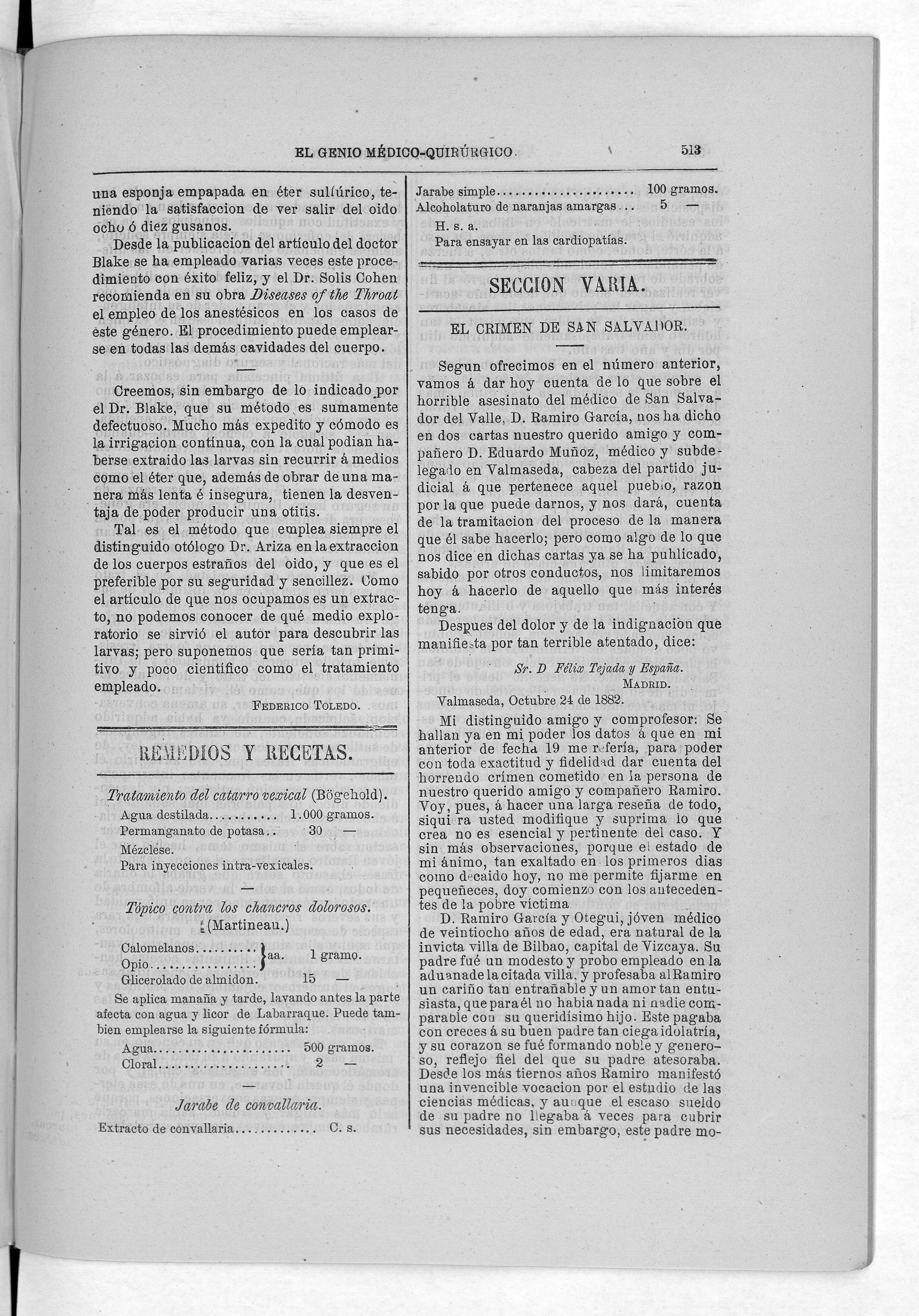 Parte de El Genio médico-quirúrgico : periódico de ciencias médicas ‐ [1882, Vol. 28, n. 1366-1393, 1340-1359.]