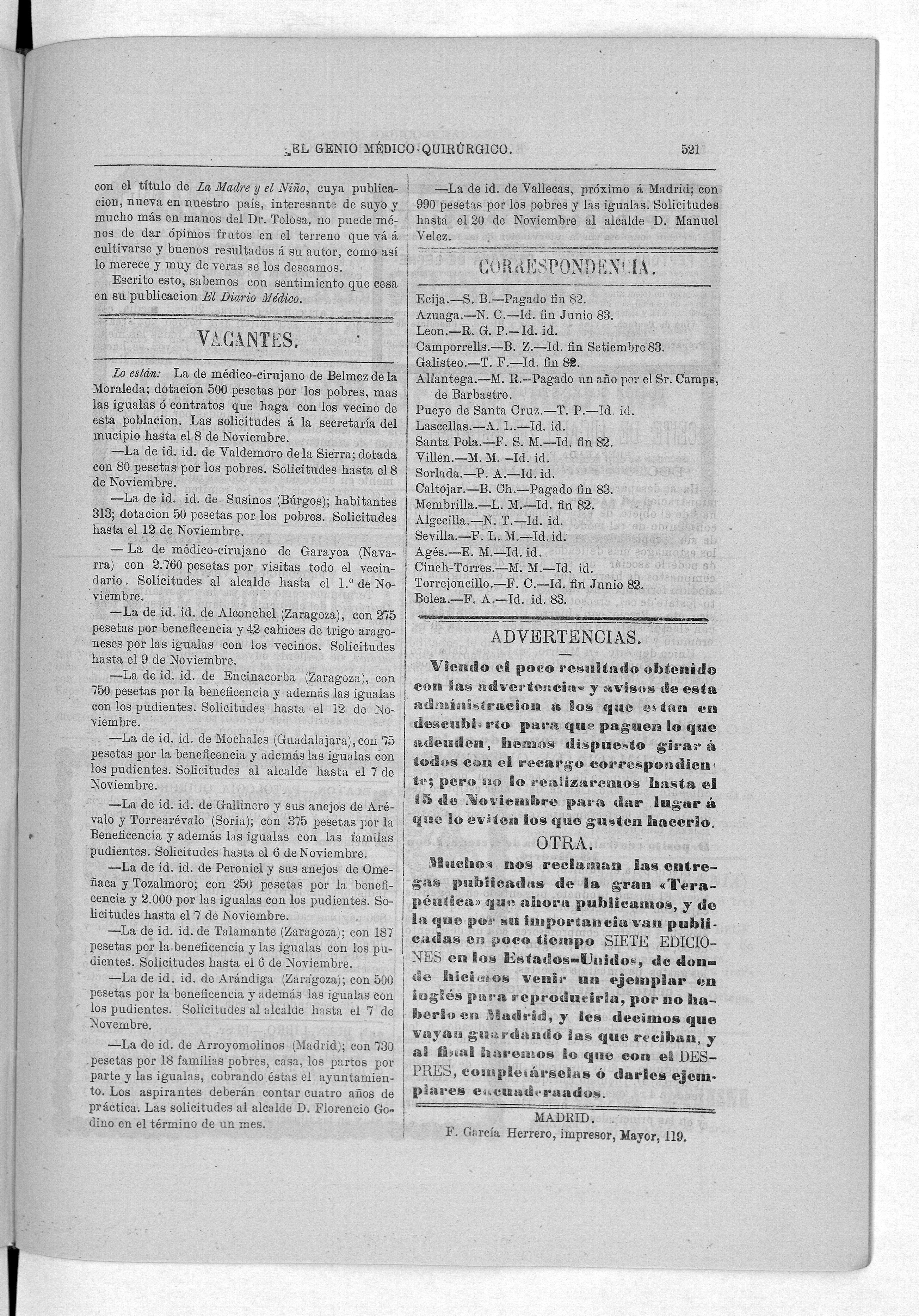 Parte de El Genio médico-quirúrgico : periódico de ciencias médicas ‐ [1882, Vol. 28, n. 1366-1393, 1340-1359.]