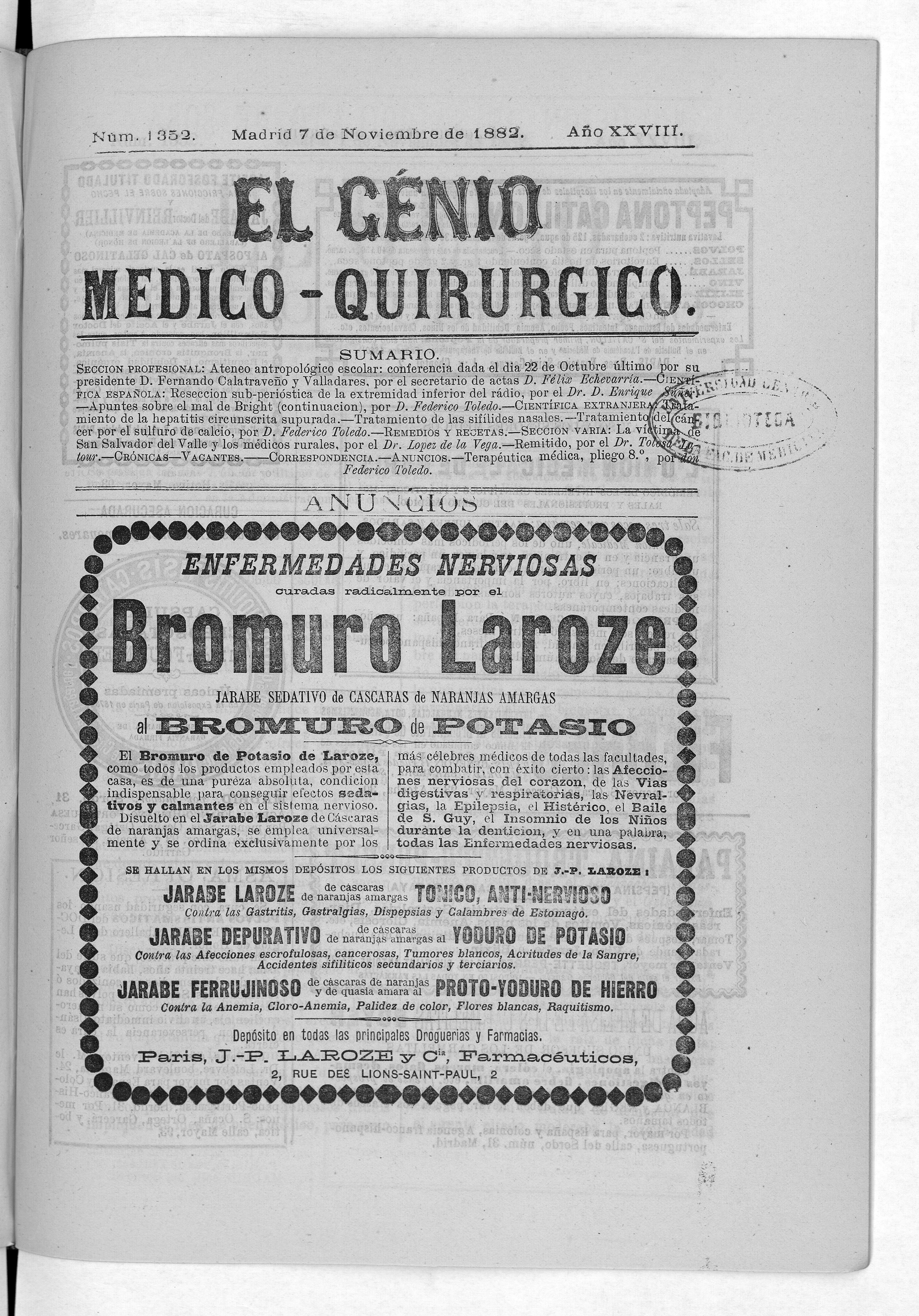 Parte de El Genio médico-quirúrgico : periódico de ciencias médicas ‐ [1882, Vol. 28, n. 1366-1393, 1340-1359.]