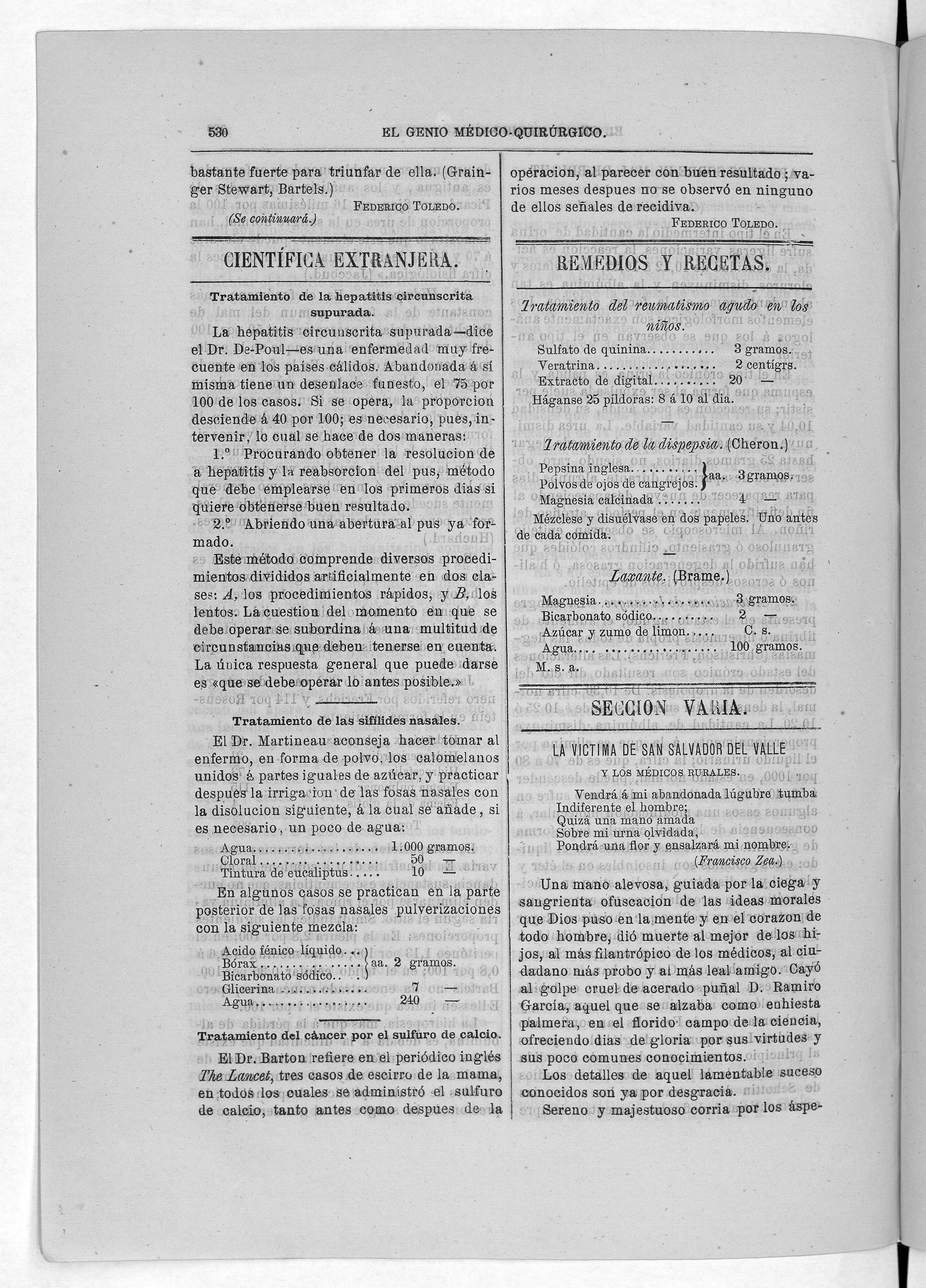Parte de El Genio médico-quirúrgico : periódico de ciencias médicas ‐ [1882, Vol. 28, n. 1366-1393, 1340-1359.]