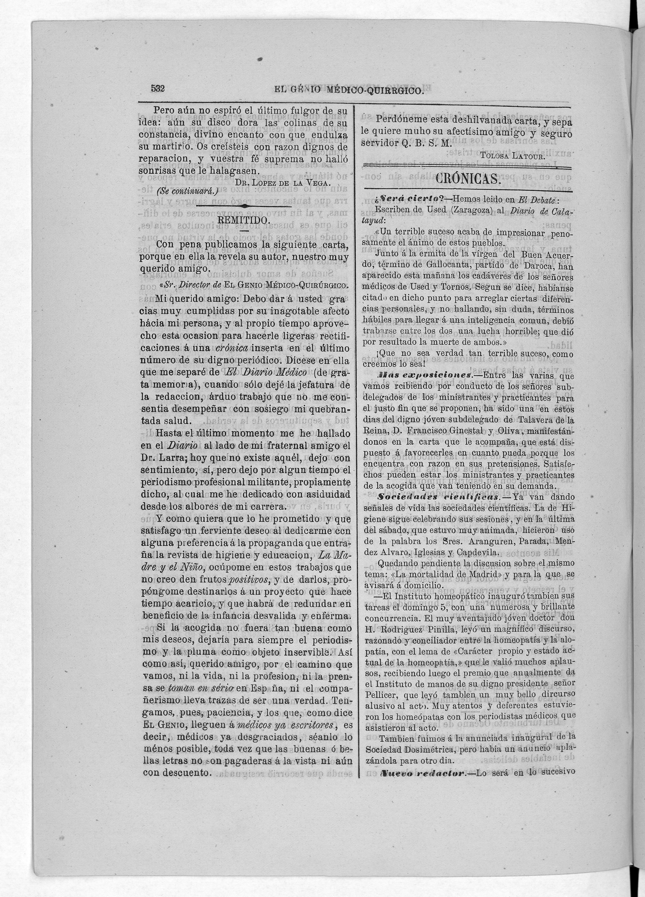 Parte de El Genio médico-quirúrgico : periódico de ciencias médicas ‐ [1882, Vol. 28, n. 1366-1393, 1340-1359.]