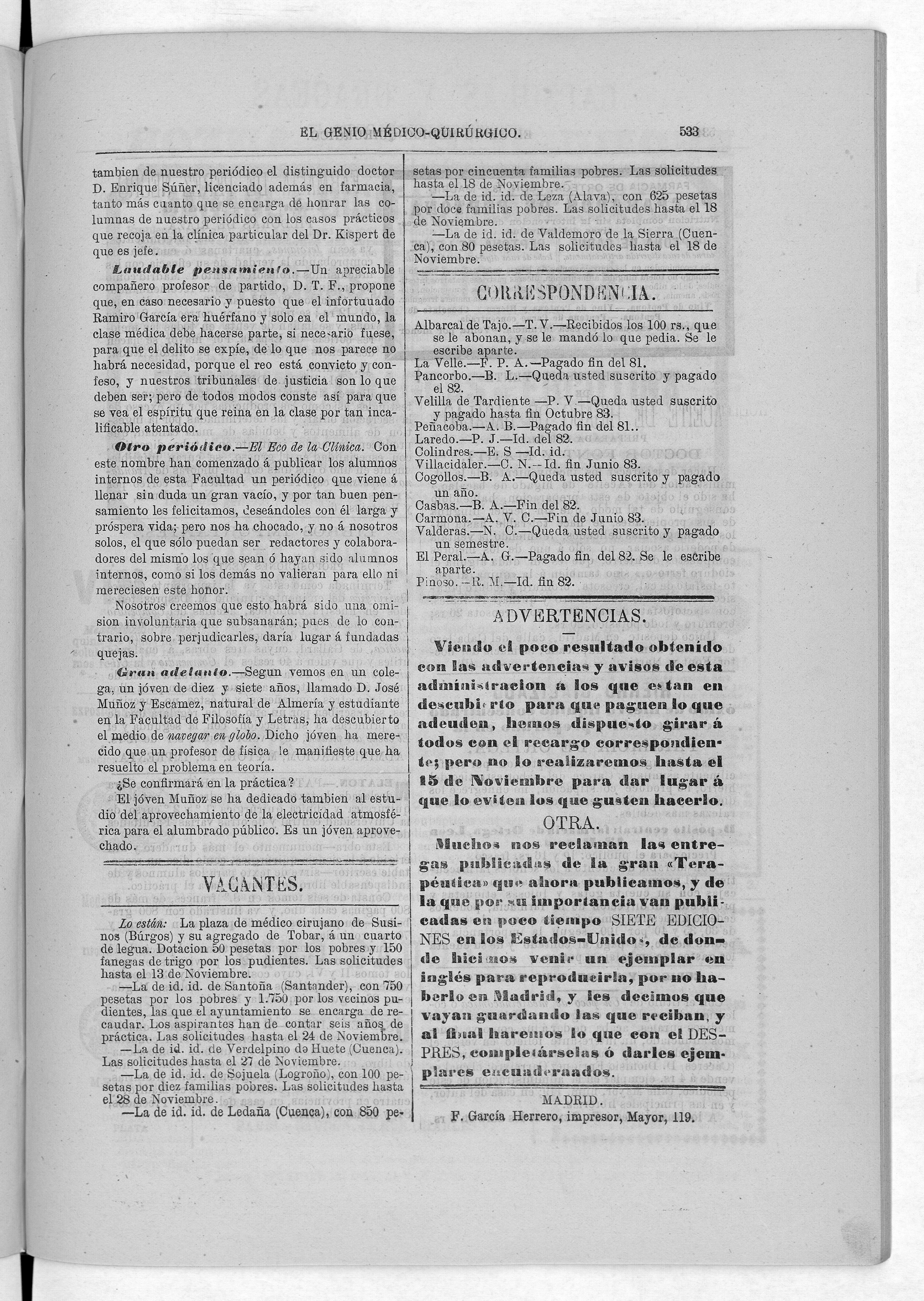 Parte de El Genio médico-quirúrgico : periódico de ciencias médicas ‐ [1882, Vol. 28, n. 1366-1393, 1340-1359.]