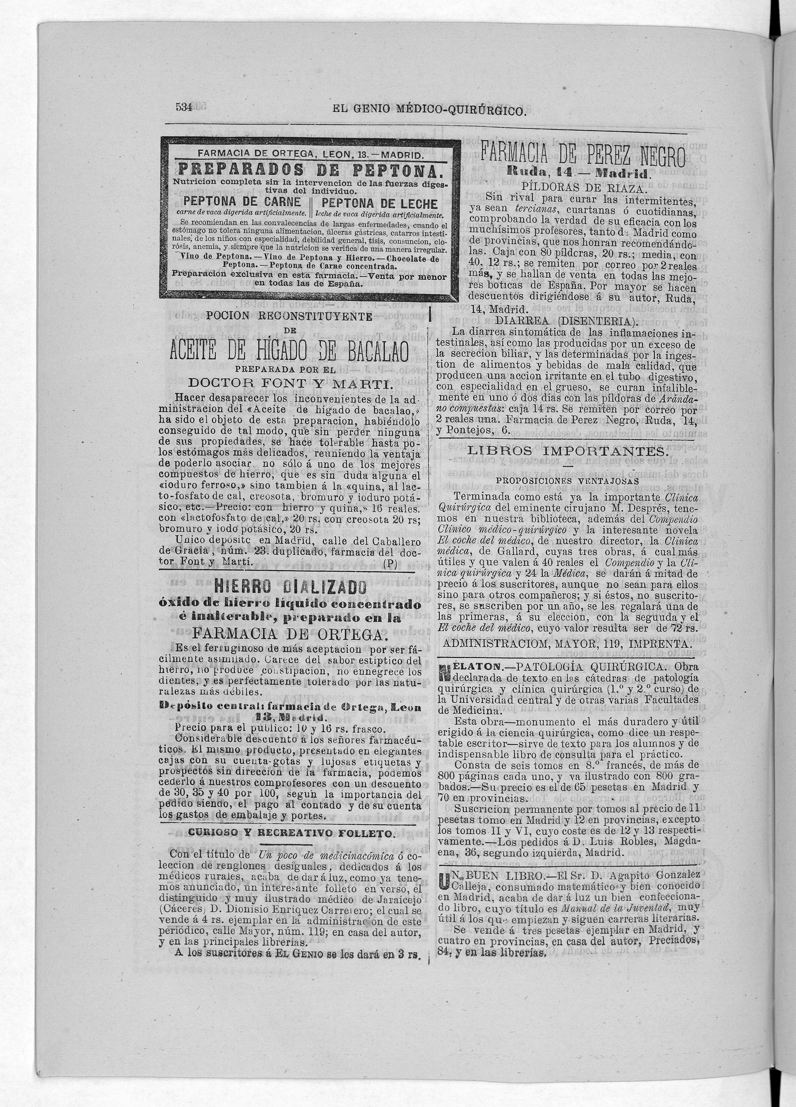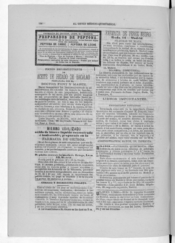 Parte de El Genio médico-quirúrgico : periódico de ciencias médicas ‐ [1882, Vol. 28, n. 1366-1393, 1340-1359.]