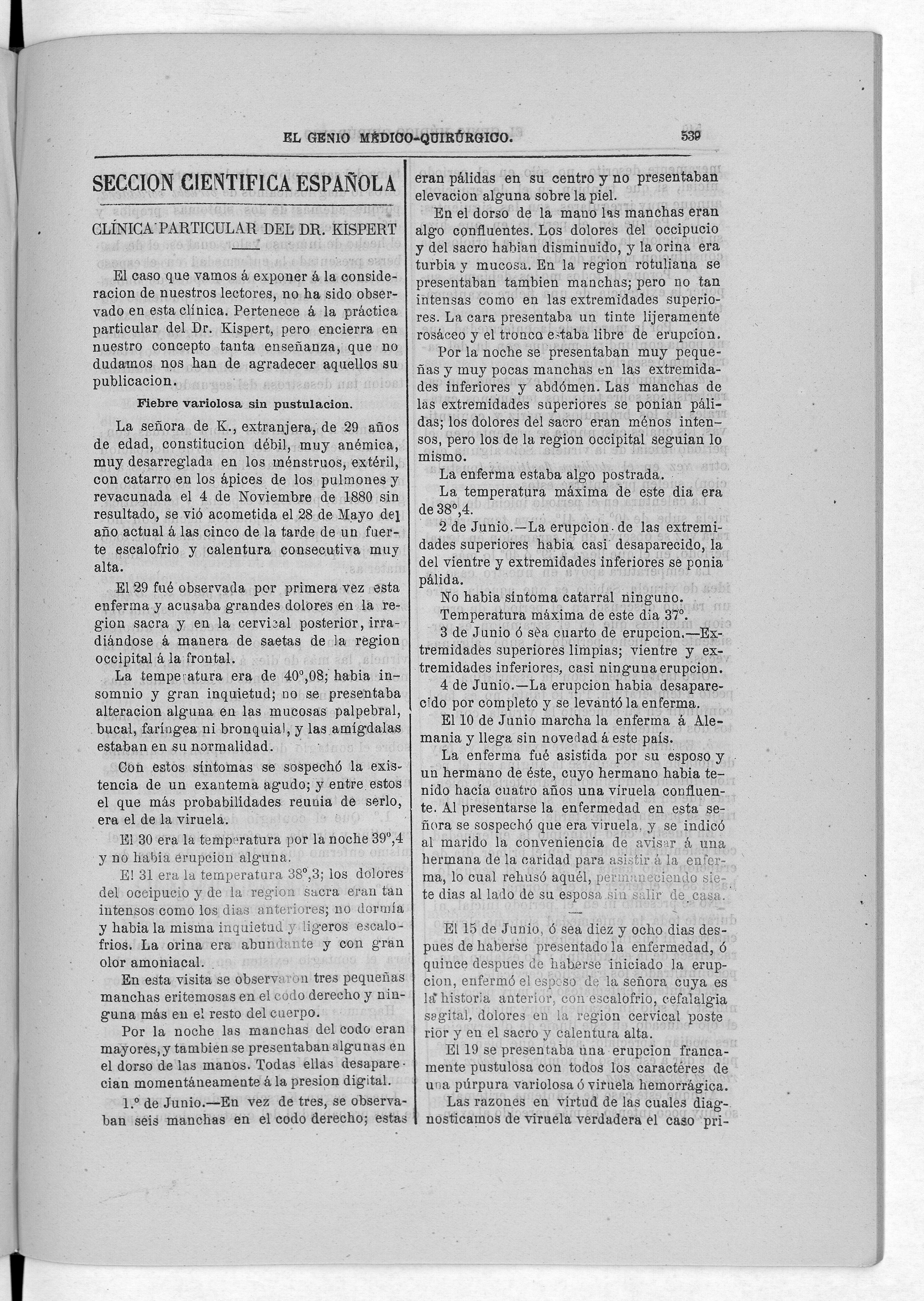 Parte de El Genio médico-quirúrgico : periódico de ciencias médicas ‐ [1882, Vol. 28, n. 1366-1393, 1340-1359.]