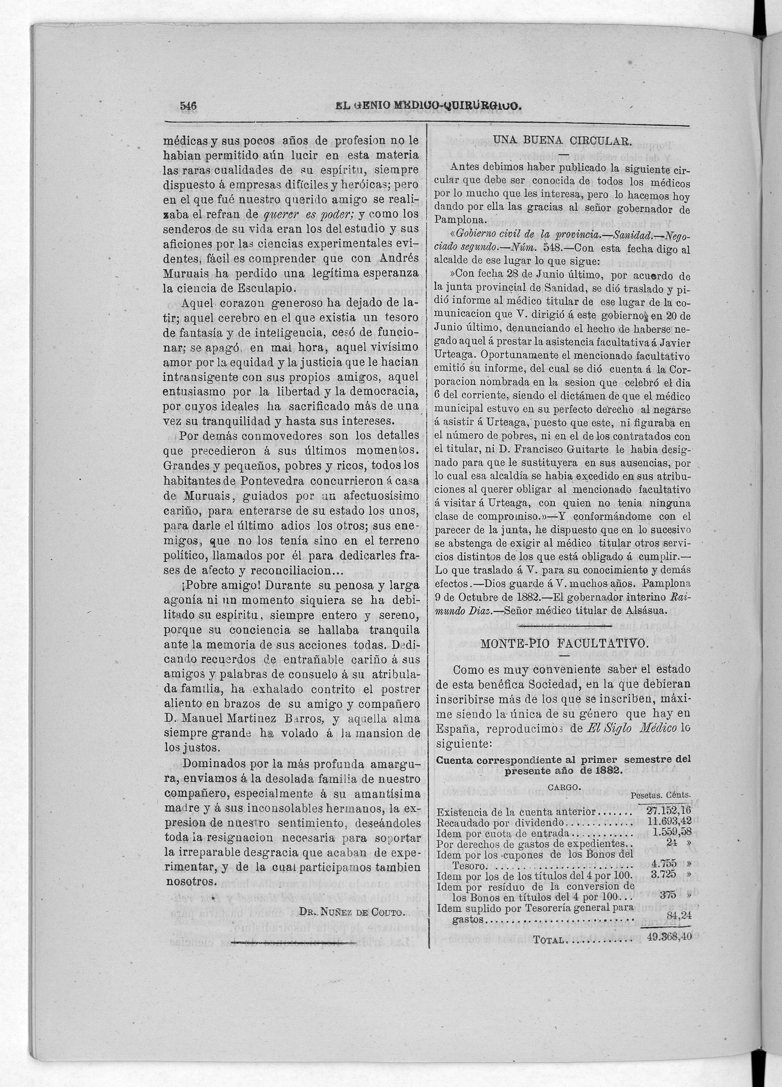 Parte de El Genio médico-quirúrgico : periódico de ciencias médicas ‐ [1882, Vol. 28, n. 1366-1393, 1340-1359.]
