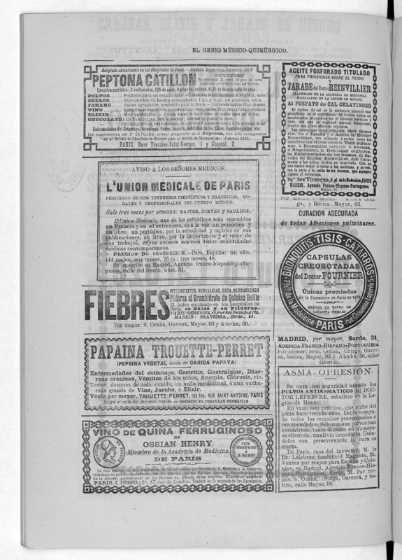 Parte de El Genio médico-quirúrgico : periódico de ciencias médicas ‐ [1882, Vol. 28, n. 1366-1393, 1340-1359.]