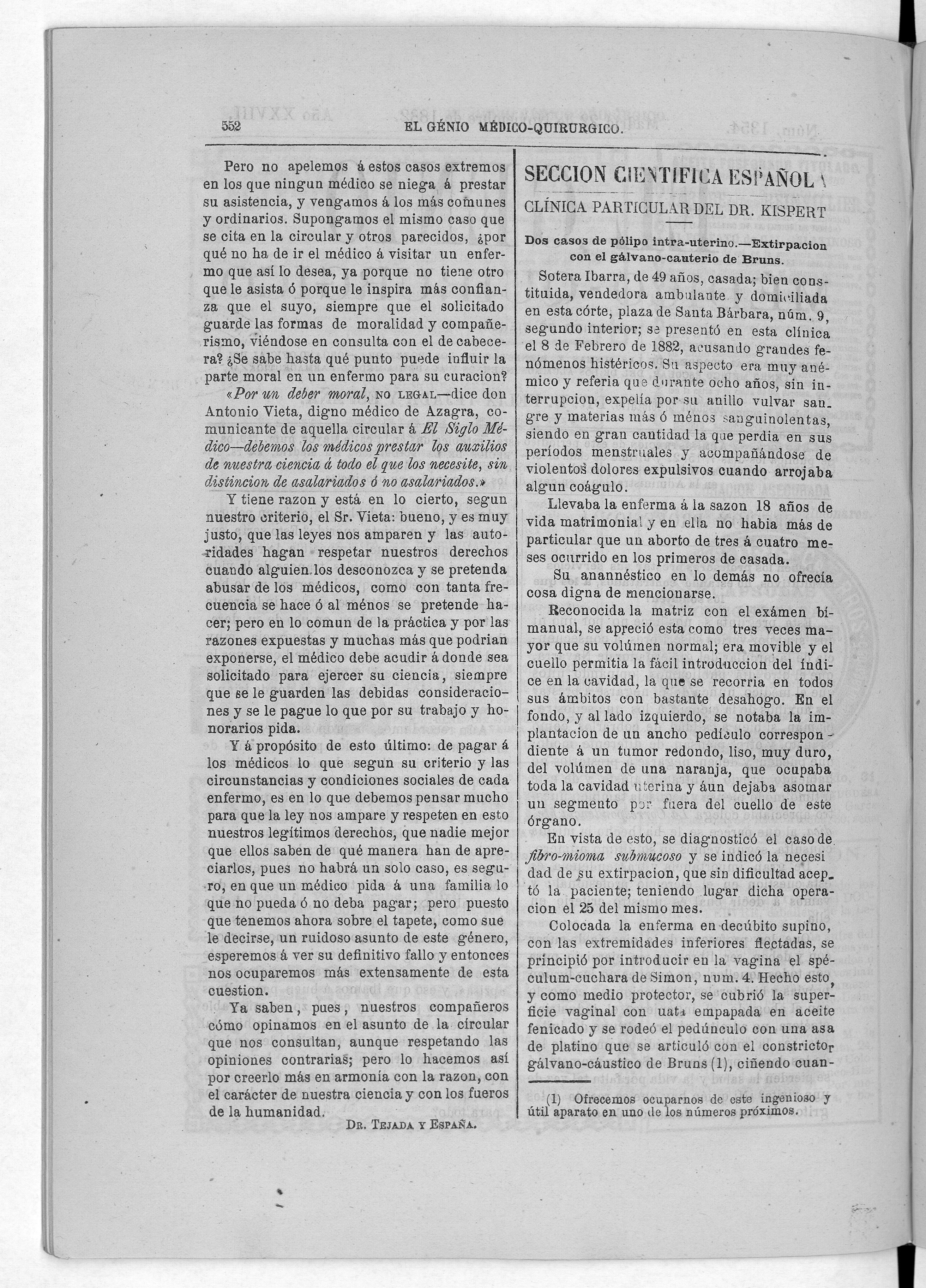 Parte de El Genio médico-quirúrgico : periódico de ciencias médicas ‐ [1882, Vol. 28, n. 1366-1393, 1340-1359.]