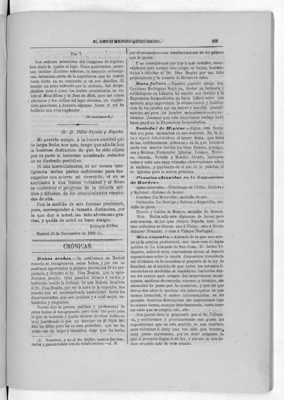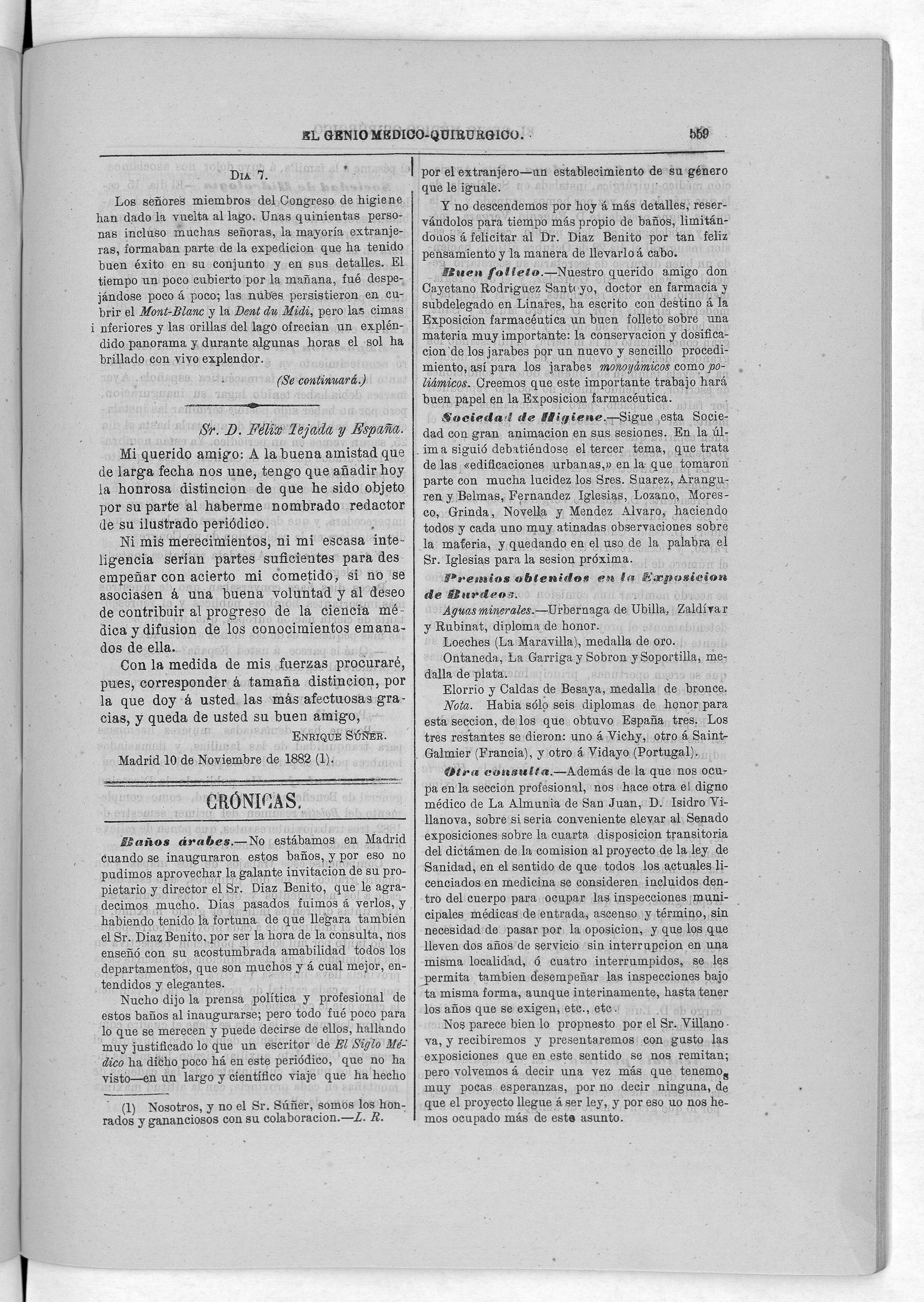 Parte de El Genio médico-quirúrgico : periódico de ciencias médicas ‐ [1882, Vol. 28, n. 1366-1393, 1340-1359.]