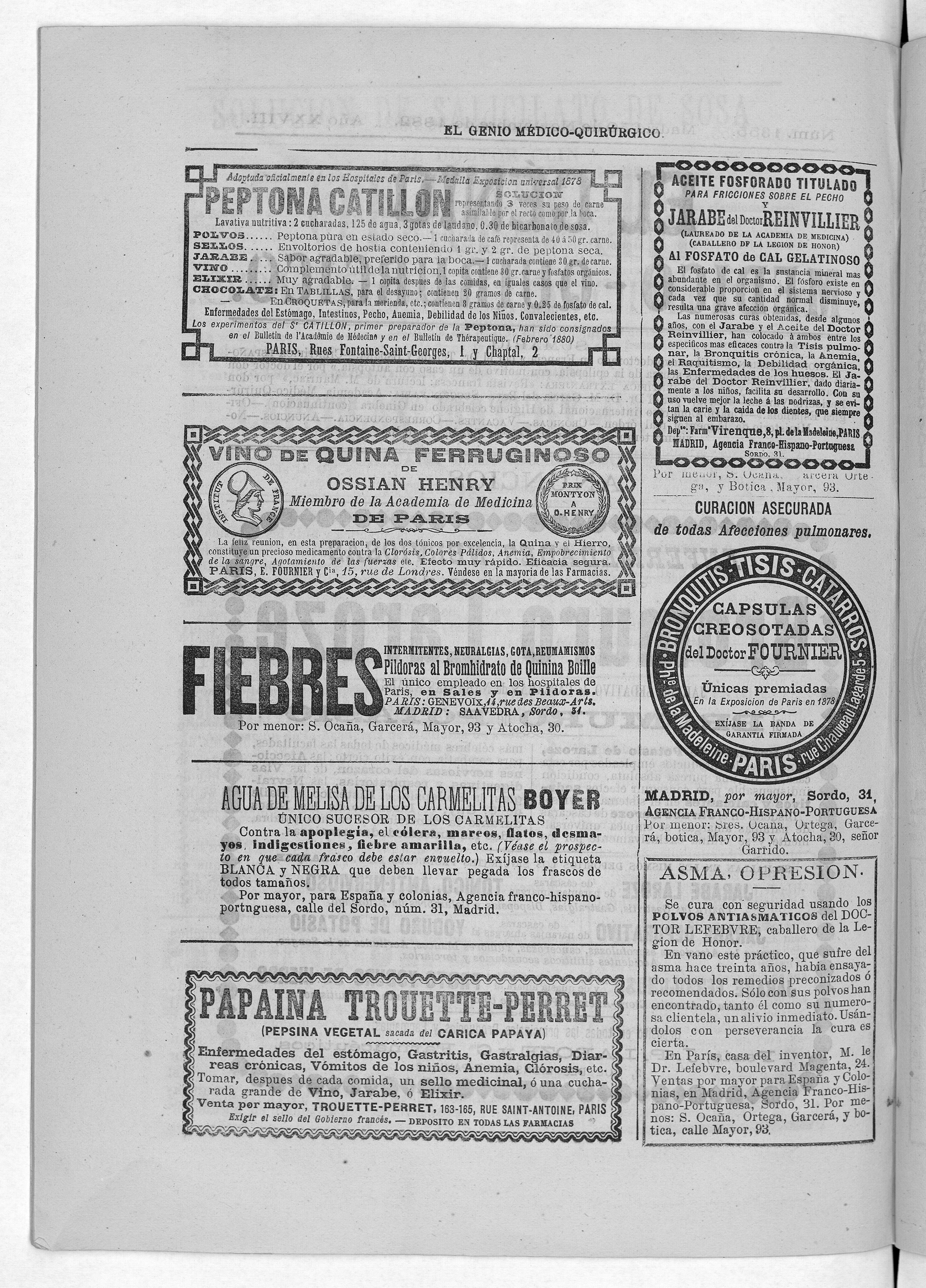 Parte de El Genio médico-quirúrgico : periódico de ciencias médicas ‐ [1882, Vol. 28, n. 1366-1393, 1340-1359.]