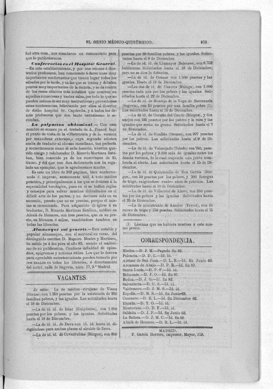 Parte de El Genio médico-quirúrgico : periódico de ciencias médicas ‐ [1882, Vol. 28, n. 1366-1393, 1340-1359.]