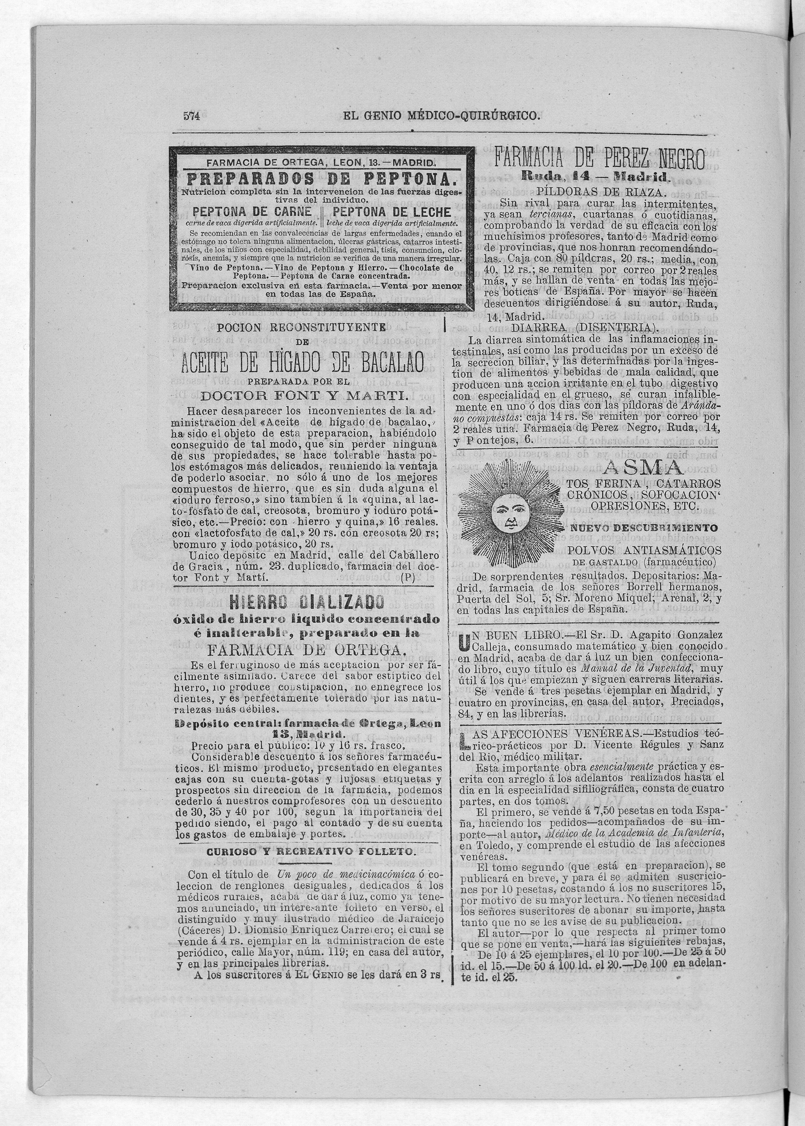 Parte de El Genio médico-quirúrgico : periódico de ciencias médicas ‐ [1882, Vol. 28, n. 1366-1393, 1340-1359.]