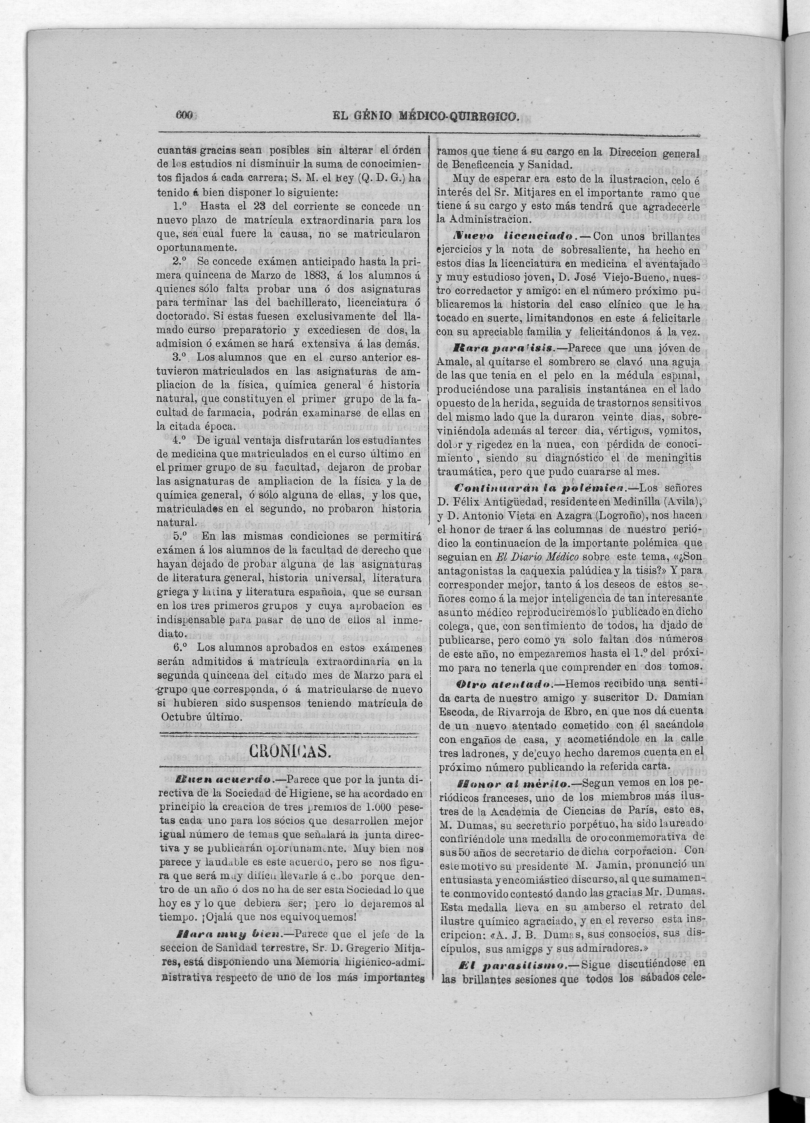 Parte de El Genio médico-quirúrgico : periódico de ciencias médicas ‐ [1882, Vol. 28, n. 1366-1393, 1340-1359.]