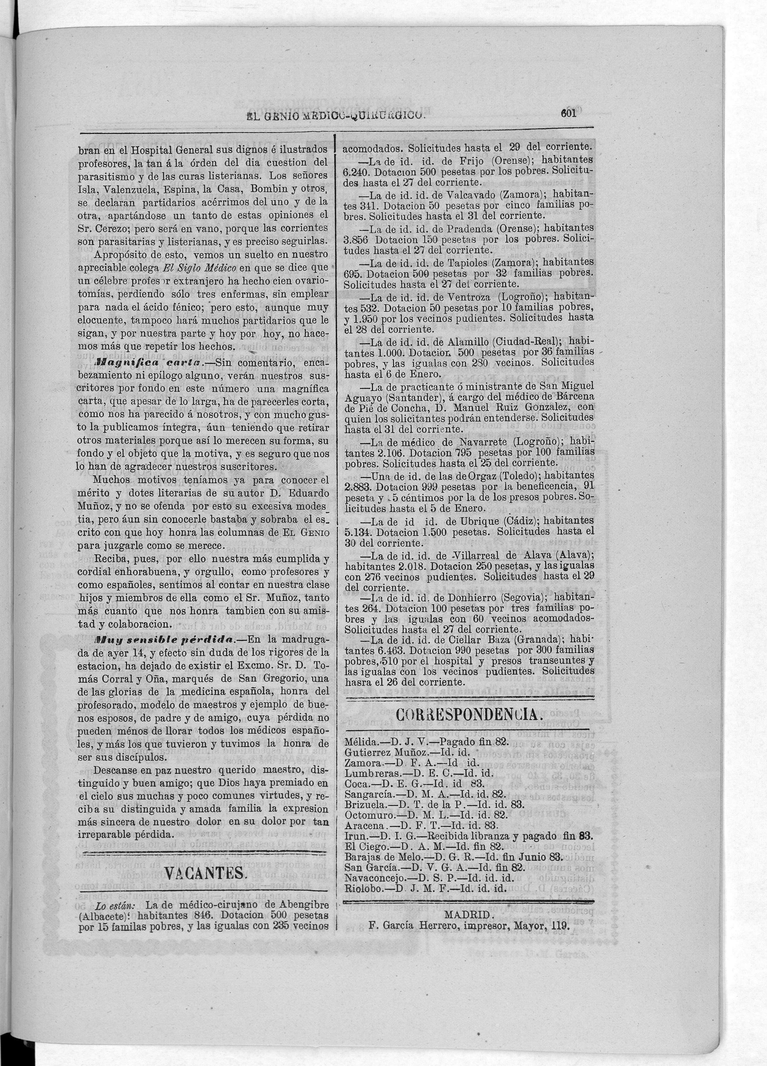 Parte de El Genio médico-quirúrgico : periódico de ciencias médicas ‐ [1882, Vol. 28, n. 1366-1393, 1340-1359.]