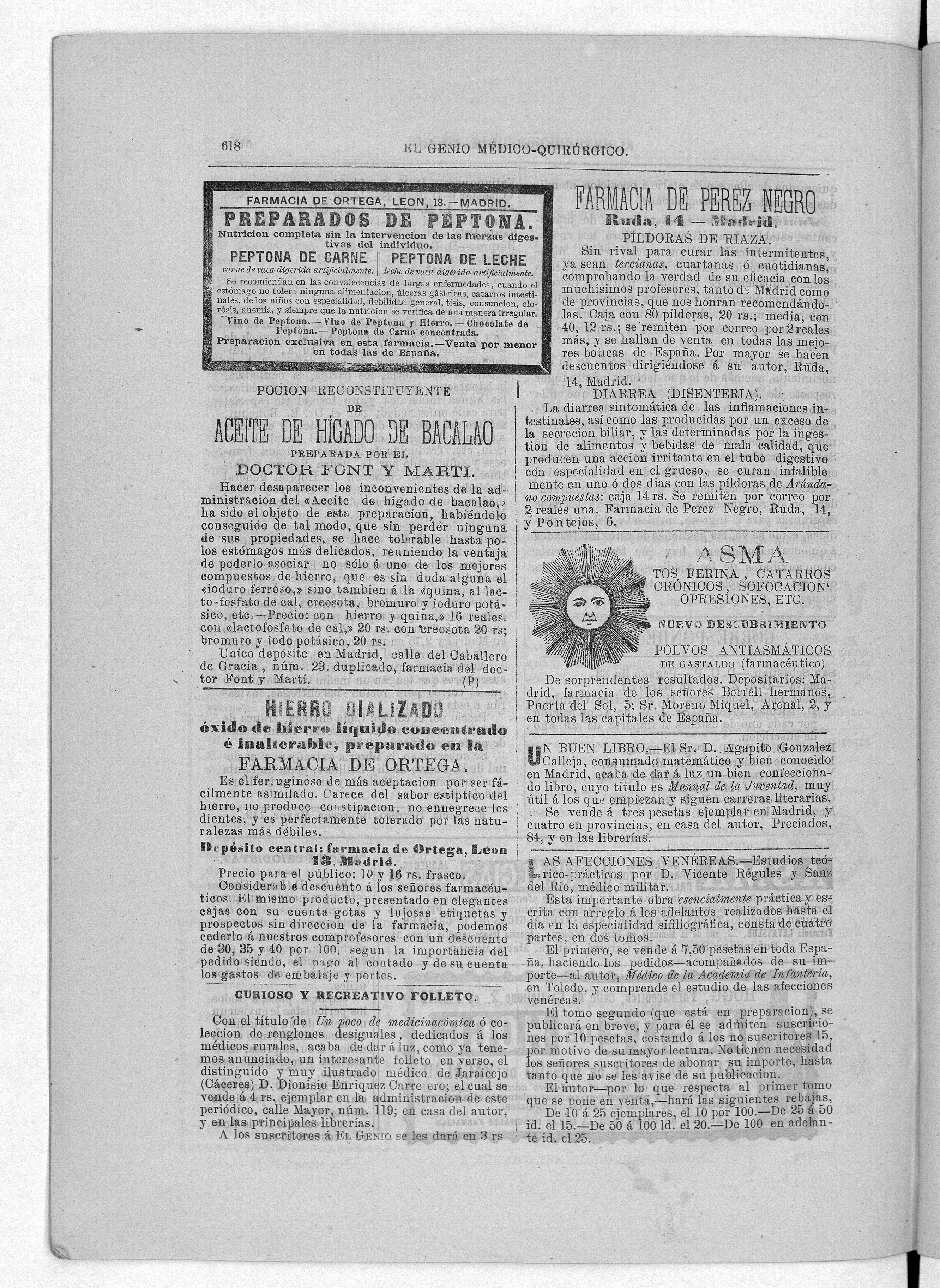 Parte de El Genio médico-quirúrgico : periódico de ciencias médicas ‐ [1882, Vol. 28, n. 1366-1393, 1340-1359.]